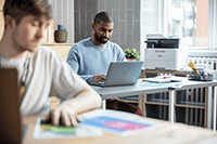 Stampa silenziosa senza compromessi in termini di velocità o qualità. Questo modello consente di stampare pagine a colori in modo rapido e impeccabile, pur essendo più silenzioso della normale conversazione in ufficio, rendendo questo dispositivo perfetto per il lavoro in ufficio.