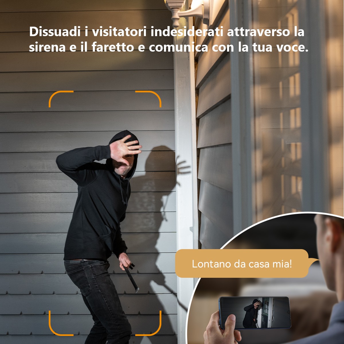 La telecamera di sicurezza Versa è dotata di un sistema di rilevamento delle persone basato sull'intelligenza artificiale per fornire notifiche accurate e prevenire falsi allarmi. Inoltre, la telecamera dispone di 4 modalità di visione notturna per offrire una sicurezza ottimale anche la sera. Ad esempio, è possibile scegliere tra la visione notturna a infrarossi che mostra chiaramente le immagini in bianco e nero e la visione notturna a colori intelligente che mostra le immagini a colori con il supporto del faretto. Tutte le impostazioni e le regolazioni della fotocamera possono essere effettuate nella pratica app Imou Life.