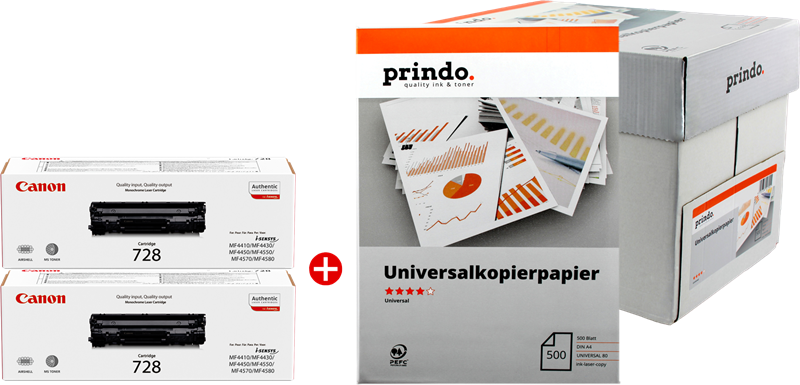 Canon Value Pack nero / Bianco 728 MCVP 01 + Prindo carta universale 2500 fogli