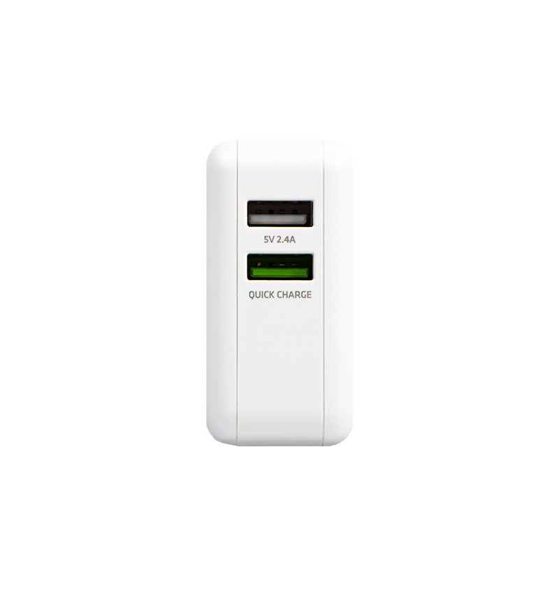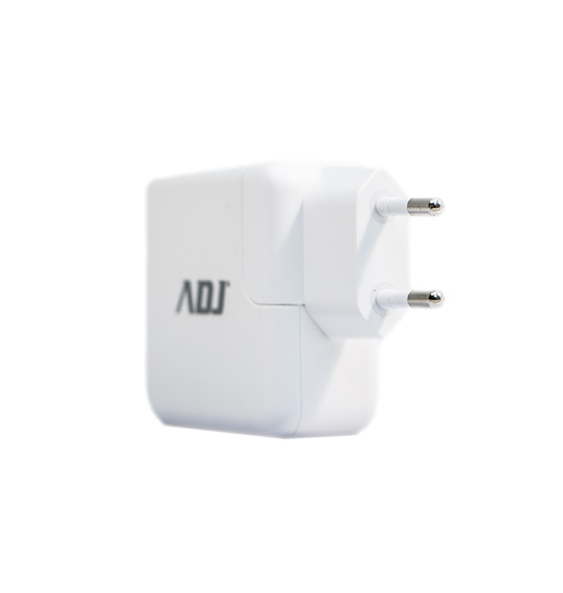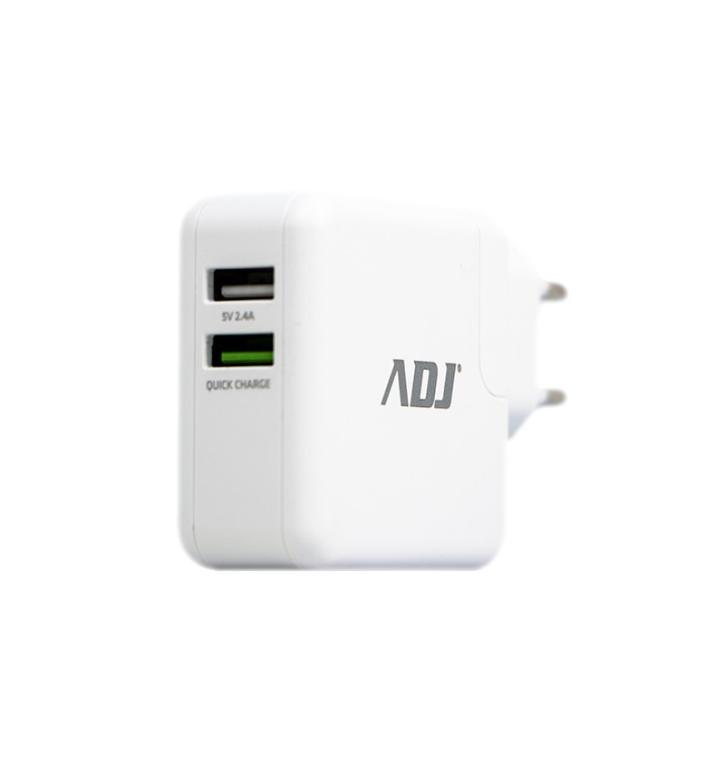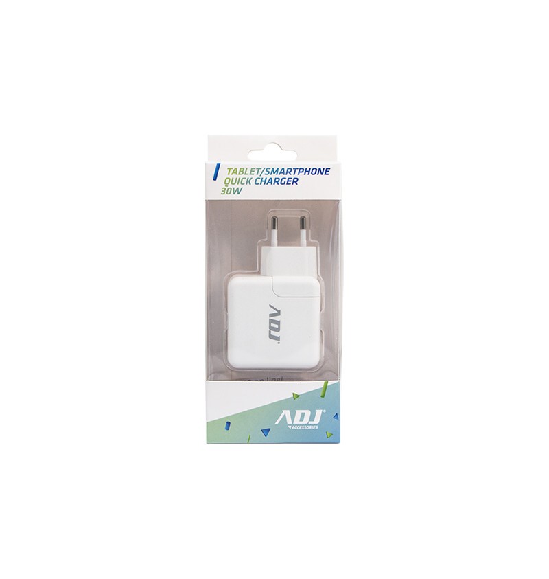 Alimentatore universale per Smartphone/Tablet casa/ufficio ADJ - Due porte USB di uscita per alimentare contemporaneamente 2 utenze - Dotato di porta Quick Charge che ricarica fino all'80% più velocemente di un normale caricatore - 30 Watt - Colore Bianco