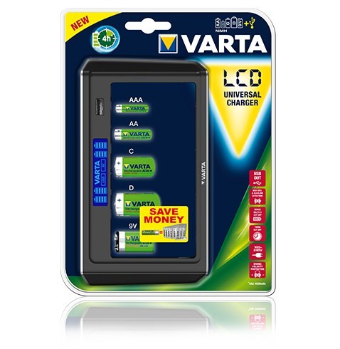 Varta -57678. Colore del prodotto: Nero. Tipo: Caricabatteria per interni, Dimensioni della batteria compatibile: 9v,AA,AAA,C,D, Tecnologie batteria compatibili: Nichel-Metallo Idruro (NiMH). Numero di prodotti inclusi: 1 pezzo(i)