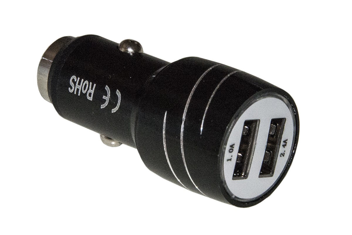 Caricabatteria da auto USB, 2 porte, eroga un totale di 3,4 Ampere. La potenza è quindi sufficiente per alimentare anche i dispositivi più recenti. la base molto robusta è progettata in modo da permettere frequenti inserimenti e l'estrazioni senza danneggiarsi. Nelle due porte "A" USB femmina si possono inserire cavi USB con connettori micro USB, Tipo C, Lighning, Mini USB ecc. Con questo caricatore si possono caricare fino a 2 dispositivi contemporaneamente. Di dimensioni ridotte, non crea ingombro nell'alloggiamento e si può inserire anche se l'accendisigari dell'auto è posizionato in lughi disagevoli. Caricate rapidamente e in modo efficiente i vostri dispositivi mobili come per esempio smartphone, tablet, videocamere, ecc. durante il viaggio in macchina. Grazie alla sua potenza complessiva di uscita di 3,4A anche i tablet possono essere ricaricati rapidamente e in modo efficiente. Uscita: 5V/3,4A (Porta 1 1A/Porta 2,4A). Ingresso: DC 12 - 24V