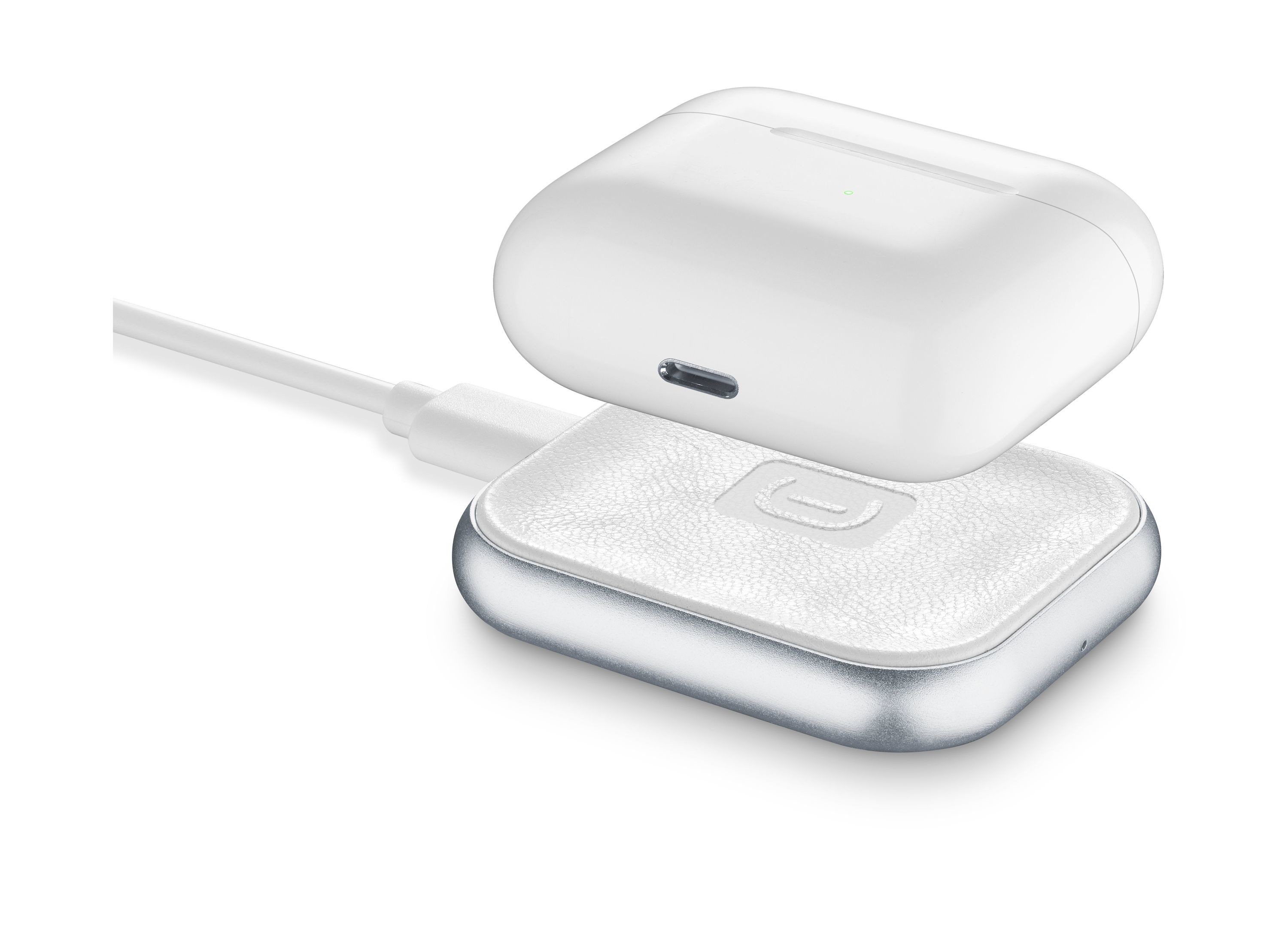 Cellularline Power Base - AirPods, AirPods Pro Base di ricarica wireless per AirPods Bianco, Interno, USB, 5 V, Carica wireless, 1,6 m, Argento, Bianco