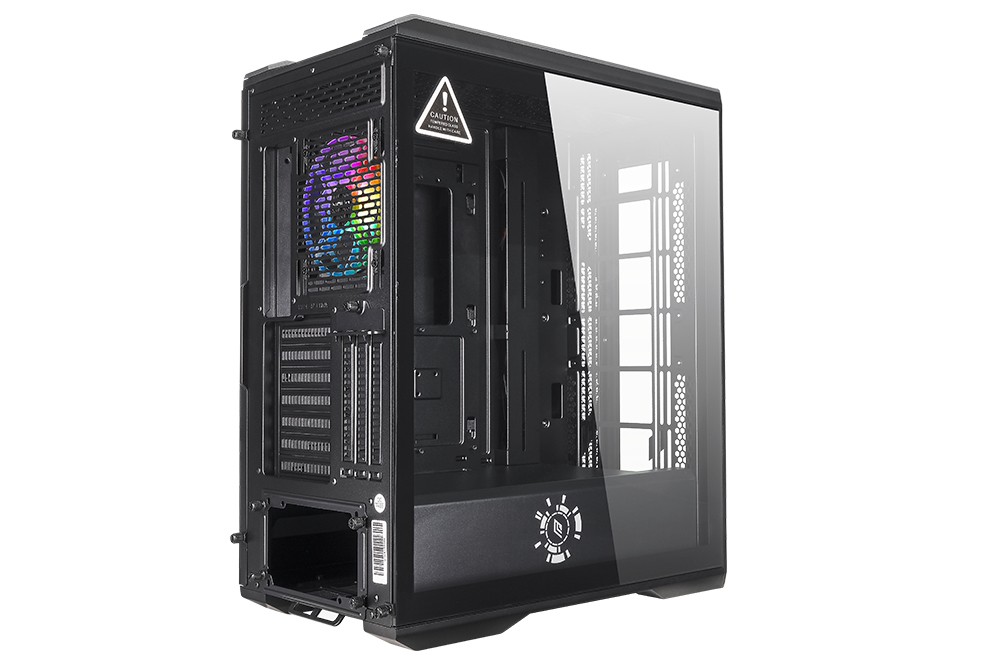 Noua Iron V1 Black Case Tower ideale per chi desidera esprimere la propria personalità e il proprio stile in modo sofisticato. Il Case con frontale intercambiabile mesh/glass e pannello laterale in vetro temperato. Pre-installata 1 ventola sincronizzabile RGB Rainbow (una retro). In Dotazione è presente anche un comodo telecomando per la regolazione dei colori e della luminosità ed un controller che permette l’installazione fino a 6 ventole. Il Case è di compatte dimensioni e può ospitare Dissipatori ad Aria fino a 185 mm e Schede Video con una lunghezza massima di 390 mm e la possibilità di poter installare anche schede video in VERTICALE; è previsto un cover in metallo per coprire l’alimentatore e avere una gestione dei cavi più pulita. Sui pannelli superiore ed inferiore del case sono presenti filtri anti-polvere, quello superiore magnetico.