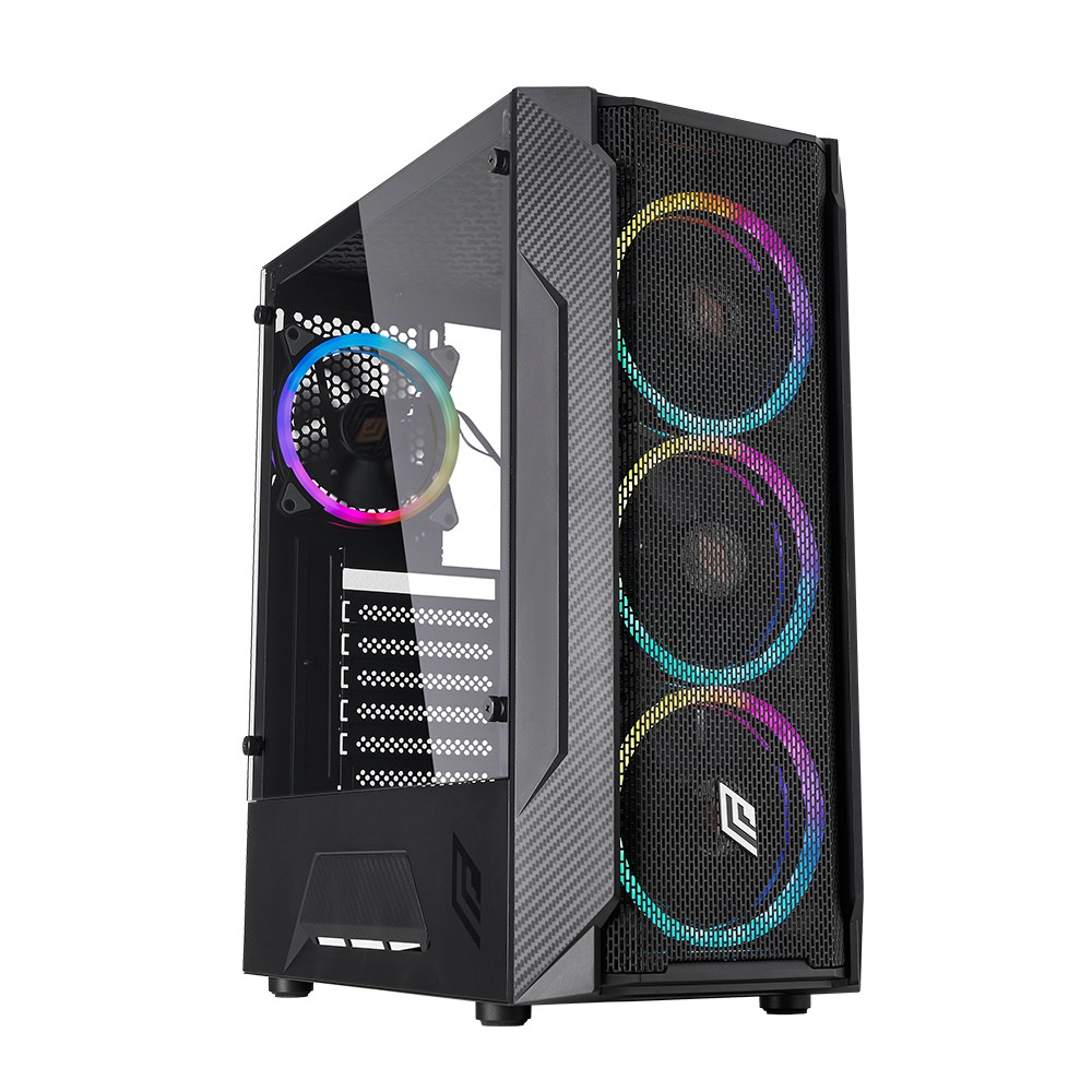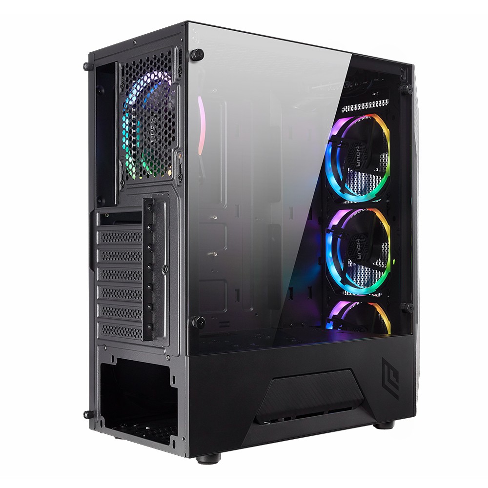 Case Mid Tower ideale per chi desidera esprimere la propria personalità e il proprio stile in modo sofisticato. Il Case con frontale mesh/abs e pannello laterale in vetro temperato. Pre-installate 4 ventole sincronizzabili RGB modello: Dual Halo (tre frontali e una retro). In Dotazione è presente anche un comodo telecomando per la regolazione dei colori e della luminosità, il controller permette l’installazione fino a 8 ventole ed è dotato di pulsante per la regolazione della velocità in doppia modalità 800Rpm e 1200Rpm. Il Case è di compatte dimensioni e può ospitare Dissipatori ad Aria fino a 160 mm e Schede Video con una lunghezza massima di 300 mm, è previsto un cover in metallo per coprire l’alimentatore e avere una gestione dei cavi più pulita. Sui pannelli superiore ed inferiore del case sono presenti filtri anti-polvere, quello superiore magnetico.