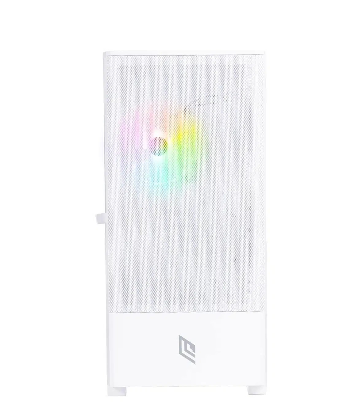 Preinstallata una ventola ARGB indirizzabile sul retro del case. Essa ha alimentazione Sata, connettore 2pin per tasto reset, connettore 3pin 5v per la sincronizzazione su schede madri, connettore 4pin per aggiungere altre ventole.