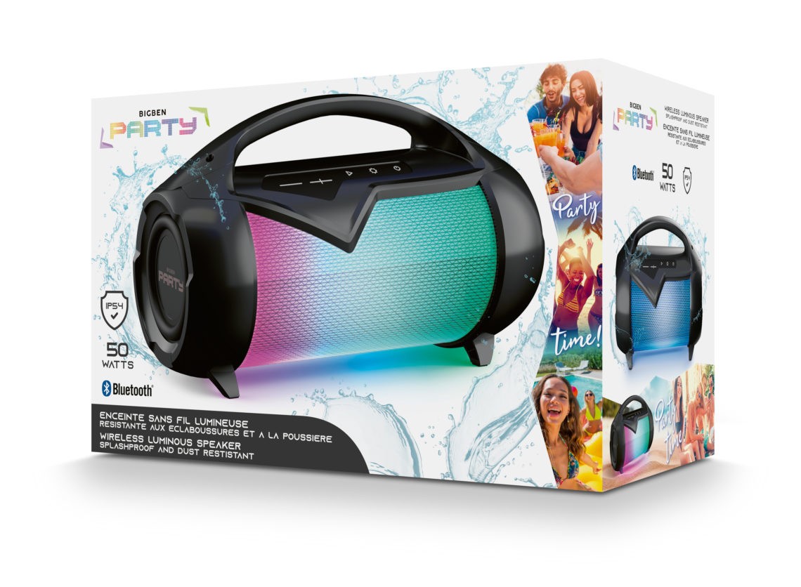 Bigben Interactive PARTYBTIPLITE. Potenza in uscita (RMS): 50 W. Tecnologia di connessione: Con cavo e senza cavo, Connettore USB: USB tipo A, USB tipo-C. Tipo di prodotto: Altoparlante portatile stereo, Colore del prodotto: Nero, Design del prodotto: Cilindro. Utilizzo raccomandato: Universale, Certificazione: CE, RoHS, REACH. Tipo batteria: Batteria integrata, Capacità della batteria: 3600 mAh, Voltaggio della batteria: 5 V