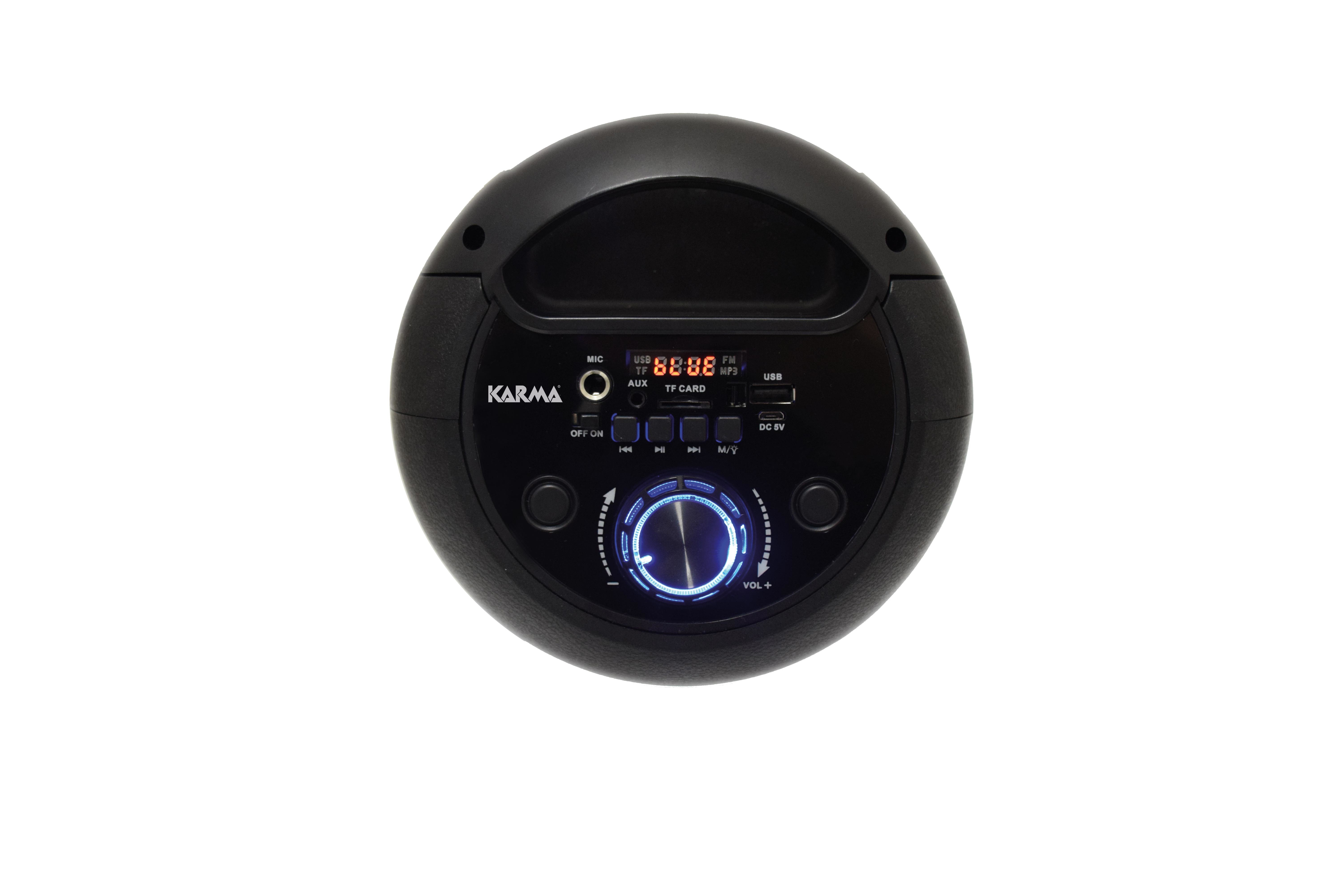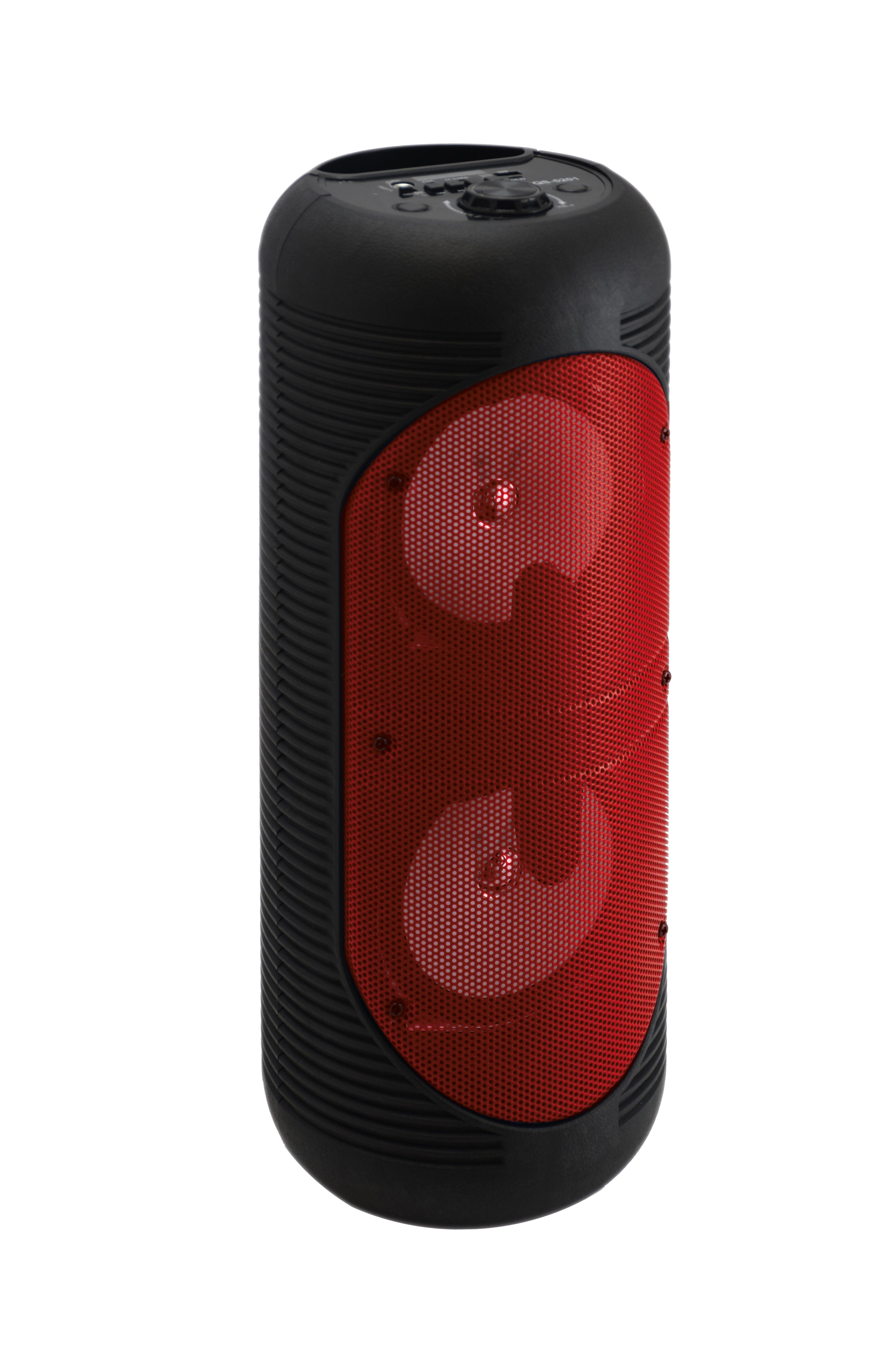 Diffusore amplificato con doppio woofer ideato sia per l'ascolto di musica sia per dilettarsi nel Karaoke in compagnia. Il look è estremamente curato e presenta dettagli esclusivi quali la griglia colorata e l'illuminazione dei woofer a ricreare un clima di festa. Ideato per i ragazzi più smart che utilizzano il bluetooth per inviare musica dal cellulare e vogliono portare con sè l'amplificatore in ogni occasione. E' alimentato da una potente batteria litio da 2400mAh che garantisce ore di funzionamento. In dotazione viene dato sia un telecomando che un microfono a filo per l'uso immediato. Si ricarica tramite presa USB(cavo incluso). Questo apparecchio dispone della innovativa funzione TWS che consente di riprodurre la musica da smartphone su 2 diffusori contemporaneamente tramite bluetooth 5.0