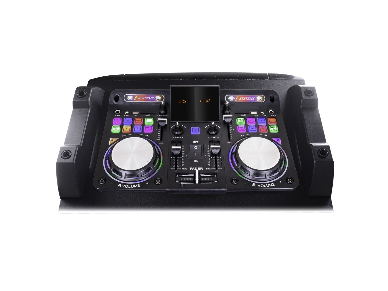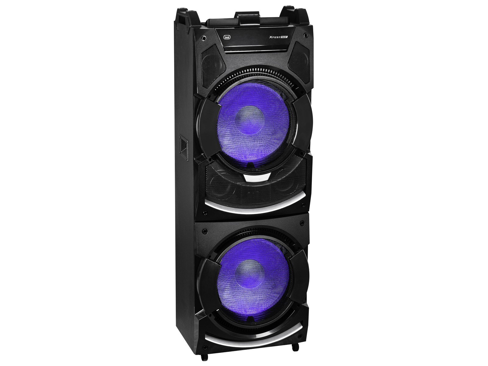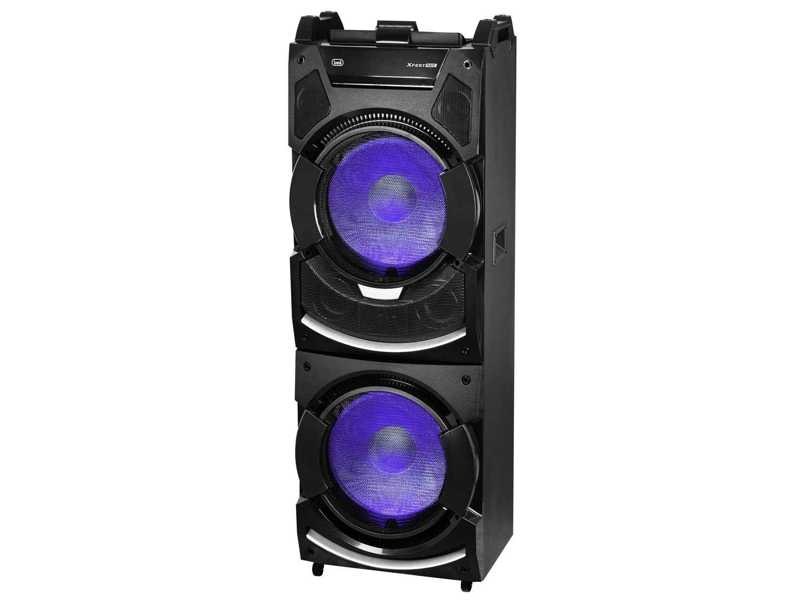 Trevi XF 4500 DJ. Sistema audio: 2.1 canali, Tipo di speaker: 2-vie, Diametro del woofer: 38,1 cm (15"). Potenza in uscita (RMS): 500 W. Tecnologia di connessione: Con cavo e senza cavo, Connettore USB: USB tipo A. Tipo di prodotto: Sistema di altoparlanti portatile 2.1, Colore del prodotto: Nero, Design del prodotto: Stand. Utilizzo raccomandato: Universale, Formati audio supportati: MP3