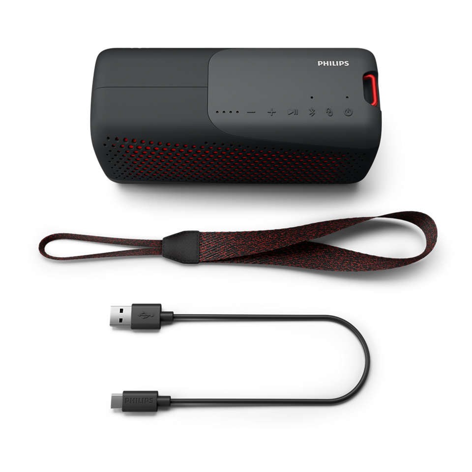 Altoparlante piccolo. Audio potente Dai parchi ai campeggi, porta sempre con te la musica che ami! Questo altoparlante portatile offre un audio nitido e bassi potenti grazie ai doppi diffusori passivi. Vuoi scatenarti ancora di più? Associa due altoparlanti per dare il via alla festa in modalità stereo. 12 ore di riproduzione e la musica continua Musica a tutto volume? Con questo altoparlante la festa continua fino quando vuoi. Con un altoparlante completamente carico, avrai fino a 12 ore di riproduzione. Abbastanza per un allenamento o una festa intorno al falò. Resistente alla polvere e impermeabile (IP67). Pronto per il rock* Dalla pista alla spiaggia fino alla piscina: la classificazione IP67 ti consente di portare ovunque questo altoparlante. Il cordino rimovibile è l'ideale per trasportarlo facilmente, mentre con la portata Bluetooth fino a 20 m non perdi mai il ritmo. Anche se il tuo telefono si trova molto distante dall'altoparlante. Bluetooth multipoint per collegare più dispositivi Combina le tue playlist per gli allenamenti! Con la connettività Bluetooth multipoint, puoi connettere contemporaneamente fino a due dispositivi smart a questo altoparlante per ascoltare la musica a turno. Se arriva una chiamata, il microfono integrato ti consente di rispondere senza scollegare il telefono dall'altoparlante. Controllo facile di musica e altro ancora I pulsanti sulla custodia esterna dell'altoparlante ti consentono di controllare il volume, la riproduzione della musica, l'associazione in modalità stereo e il Bluetooth. Vuoi dire al telefono di riprodurre un determinato brano? Tieni premuto il pulsante di riproduzione/pausa per parlare con l'assistente vocale. Chiamate in vivavoce. Attivazione dell'assistente vocale tramite pulsante