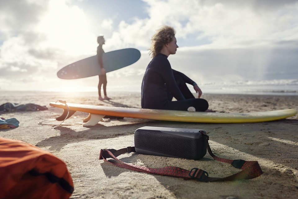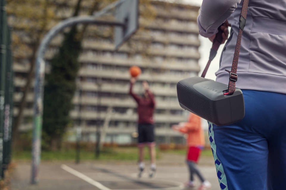Audio potente con un tocco di stile Dai parchi ai campeggi, porta sempre con te la musica che ami! Due woofer da 70 mm e due tweeter per un audio potente e nitido, oltre al design unico rendono questo altoparlante eccezionale. Vuoi scatenarti ancora di più? Associa due altoparlanti per dare il via alla festa in modalità stereo. 24 ore di riproduzione e la festa continua Musica a tutto volume? Con questo altoparlante la festa continua quanto vuoi tu. Con un altoparlante completamente carico, avrai fino a 24 ore di riproduzione e la funzione power-bank ti consente di caricare i dispositivi connessi senza interrompere la musica. Resistente alla polvere e impermeabile (IP67). Pronto per il rock* Dalla pista alla spiaggia fino alla piscina: la classificazione IP67 ti consente di portare ovunque questo altoparlante. Il cordino rimovibile è l'ideale per trasportarlo facilmente, mentre con la portata Bluetooth fino a 20 m non perdi mai il ritmo. Anche se il tuo telefono si trova molto distante dall'altoparlante. Bluetooth multipoint per collegare più dispositivi Combina le tue playlist per gli allenamenti! Con la connettività Bluetooth multipoint, puoi connettere contemporaneamente fino a due dispositivi smart a questo altoparlante per ascoltare la musica a turno. Se arriva una chiamata, il microfono integrato ti consente di rispondere senza scollegare il telefono dall'altoparlante. Controllo facile di musica e altro ancora I pulsanti sulla custodia esterna dell'altoparlante ti consentono di controllare il volume, la riproduzione della musica, l'associazione in modalità stereo e il Bluetooth. Vuoi dire al telefono di riprodurre un determinato brano? Tieni premuto il pulsante di riproduzione/pausa per parlare con l'assistente vocale. Chiamate in vivavoce. Attivazione dell'assistente vocale tramite pulsante