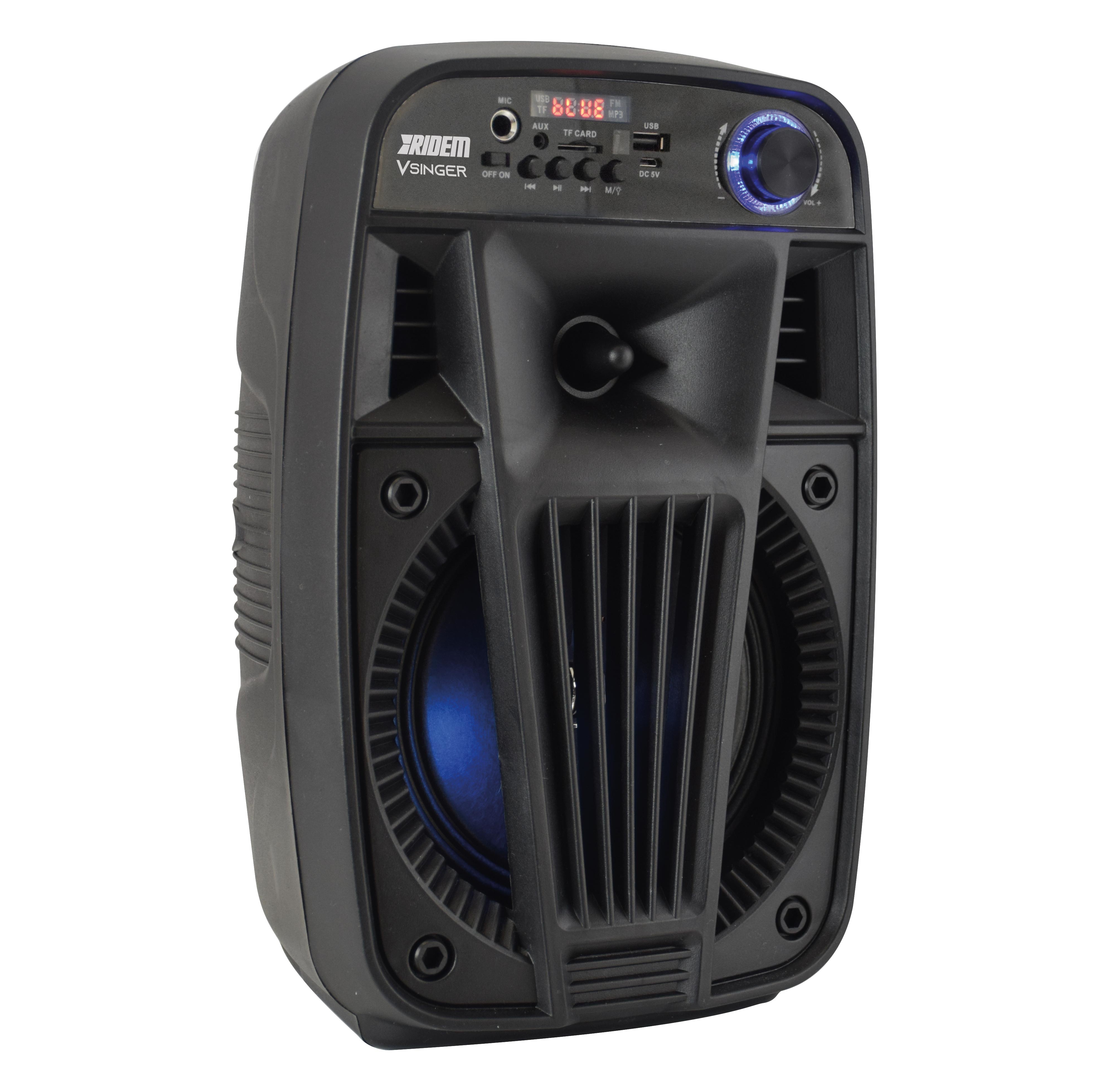 Canta le tue canzoni preferite grazie a questo diffusore amplificato che incorpora sia un lettore MP3 che una ricevente bluetooth. Riproduce i brani contenuti su chiavette USB o schede micro SD e i brani trasmessi da tablet, smartphone tramite bluetooth 5.0 Questo apparecchio dispone della innovativa funzione TWS che consente di riprodurre la musica da smartphone su 2 diffusori contemporaneamente tramite bluetooth. Viene fornito con telecomando per il controllo a distanza e microfono a filo per poterlo utilizzare immediatamente. Al''interno possiede una batteria ricaricabile tramite cavo USB(incluso). Il display mostra le informazioni sul brano riprodotto. Una presa AUX consente il collegamento di ulteriori apparecchi esterni (cavo 3,5mm incluso) Può essere posizionato su treppiedi grazie all'apposito foro inferiore. E' possibile eliminare l'effetto Echo scaricando il file dai documenti download e seguendo la procedura indicata nel file di testo presente.