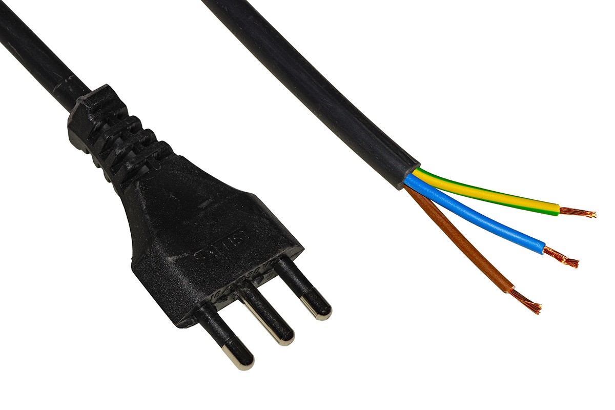 Cavo alimentazione con spina tripolare italiana 16A, e altro lato aperto per assemblaggio connettore.
