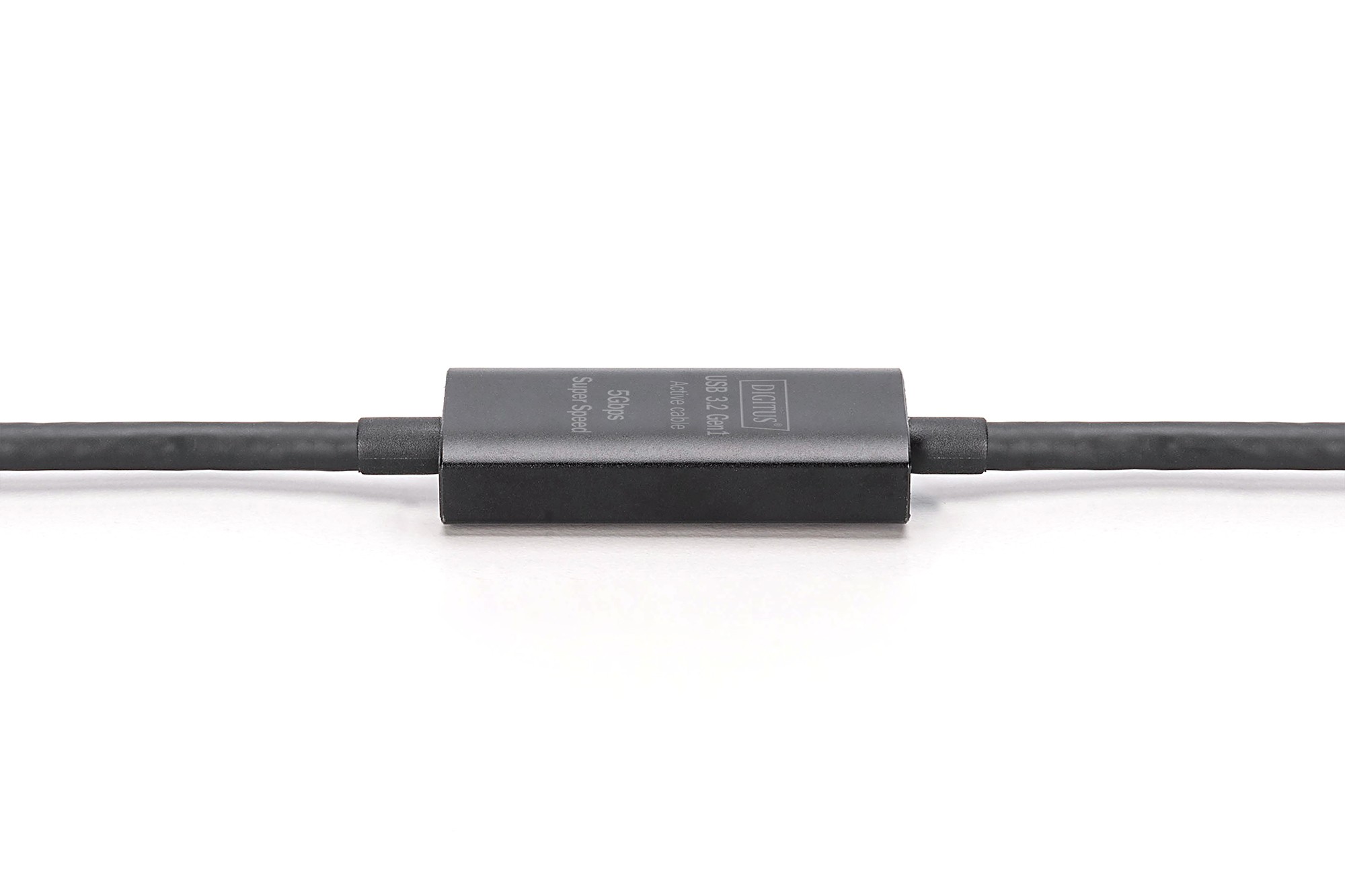 La prolunga attiva Digitus USB 3.2 Gen1 estende la lunghezza del cavo di un dispositivo USB 3.2 di 10 metri e garantisce una velocità di trasferimento dati di 5 Gbit/s su tutta la lunghezza.