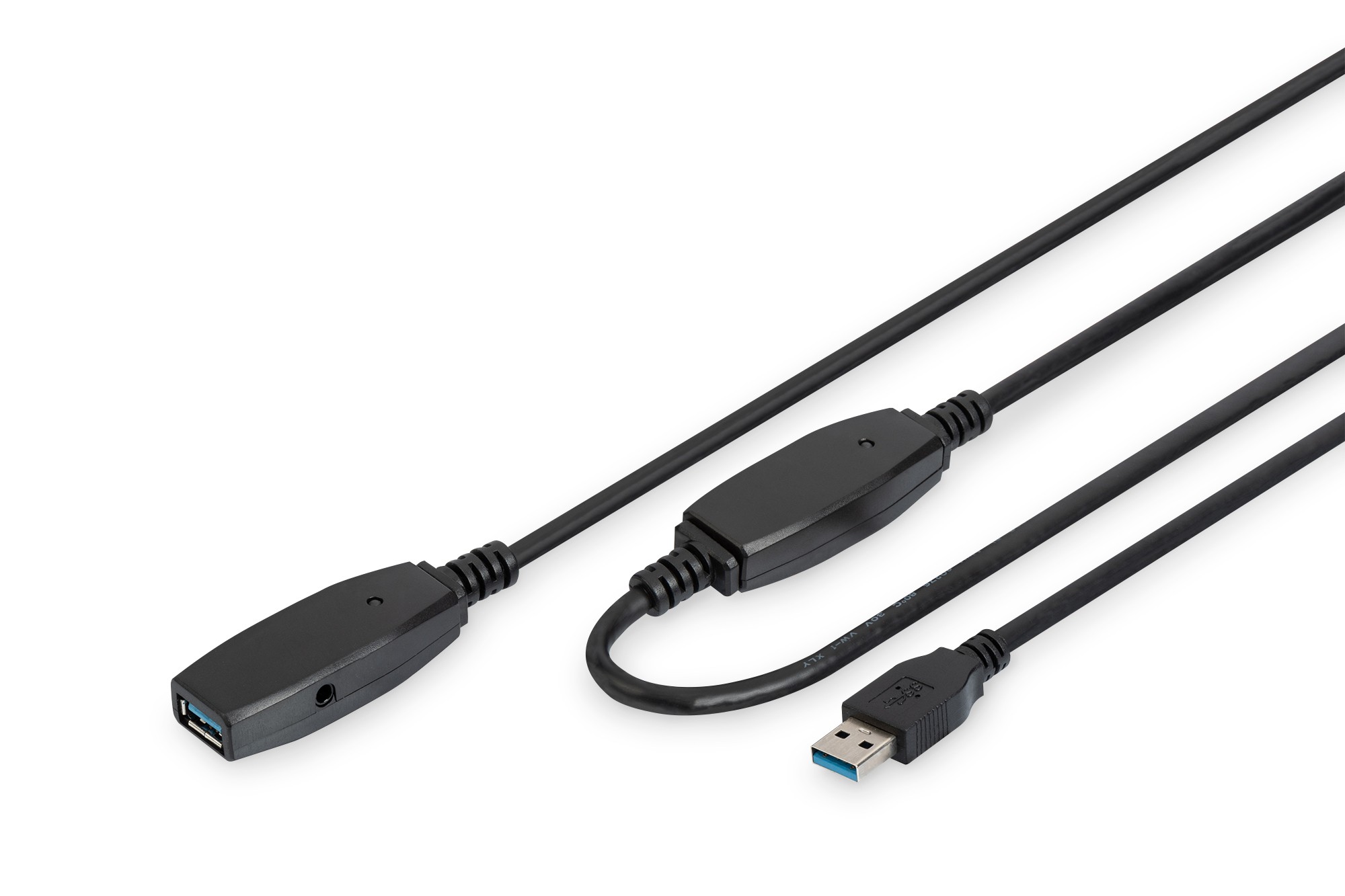 Digitus Cavo di prolunga USB 3.0 attivo, 20 m, 20 m, USB A, USB A, USB 3.2 Gen 1 (3.1 Gen 1), 5000 Mbit/s, Nero