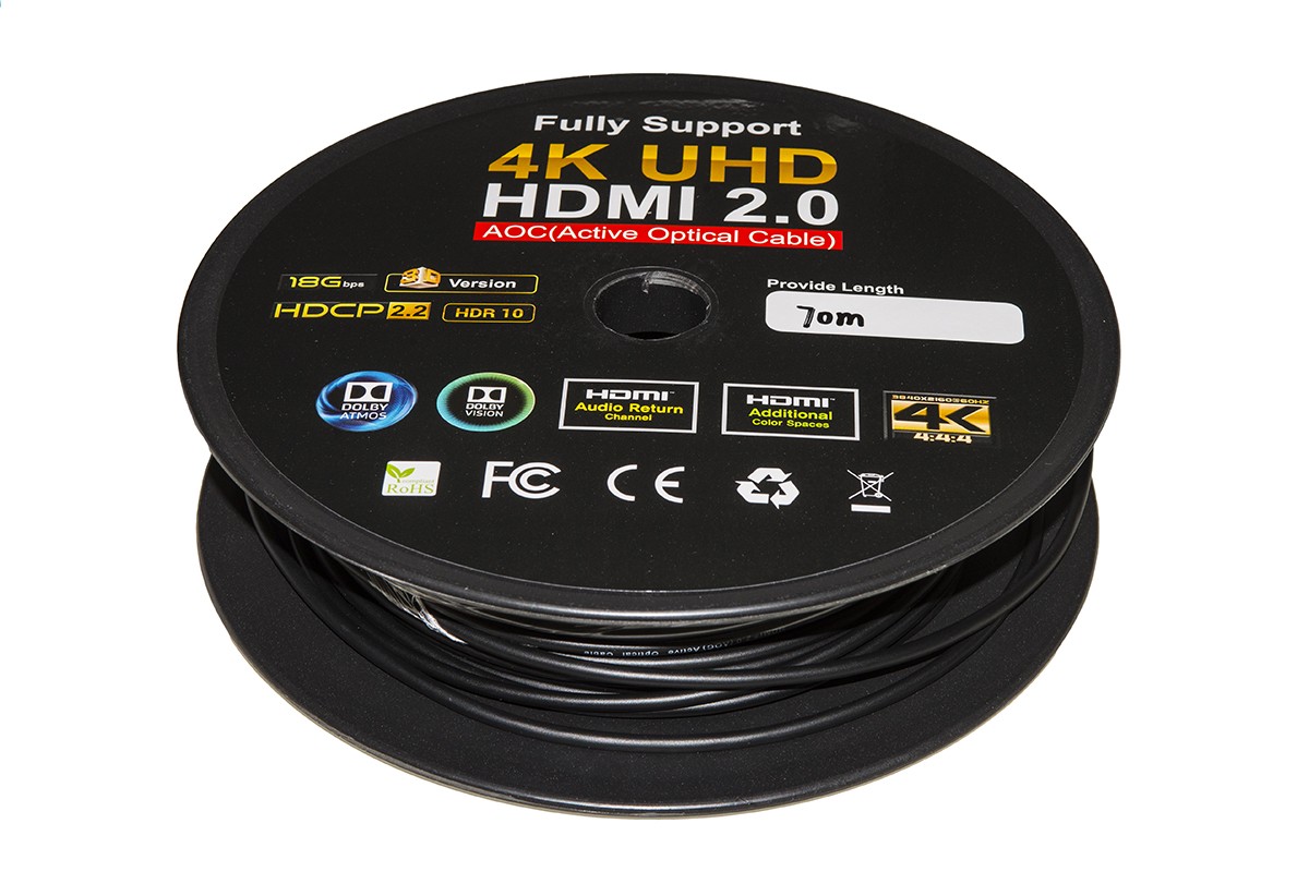Cavo fibra ottica AOC (Active Optical Cable) per collegare tra loro due dispositivi HDMI trasmettendo audio e video con la qualità 4K a lunga distanza. Per esempio si possono collegare un PC, notebook, decoder, lettore Blu ray ecc. a un video o HDTV. Nello specifico questo cavo supporta 3D, audio HD, 4K, HDCP, EDID, Plug and Play e Hot Swap. Il segnale HDMI sul cavo classico di rame comincia a deteriorarsi dopo pochi metri. Mantenere ottime risoluzioni a grandi distanze è costoso e complicato, si possono usare cavi amplificati, che solitamente non oltrepassano i 50 metri e necessitano di regolazioni, oppure si possono usare estensori tramite cavo di rete, che necessitano di alimentazione e cavi di rete su misura.L’alternativa ora sono questi cavi AOC (Active Optical Cable), coi quali si possono raggiungere grandi distanze mantenendo altissime risoluzioni e con nessuna alimentazione o regolazione da effettuare.Ê sufficiente collegare i due connettori alla HDTV e al dispositivo sorgente ed il collegamento è pronto. Rappresenta quindi un’ottima soluzione per collegamenti home video, videogame, scuole, dimostrazioni, fiere.CARATTERISTICHE E VANTAGGINon c’è perdita di segnale e l’immagine viene trasmessa con grande chiarezza senza ritardi. I cavi AOC usano fibra ottica come conduttori, che sono più leggeri e sottili dei cavi di rame facilitando così la posa e la gestione del cavo. Inoltre, i cavi AOC non risentono di interferenze elettromagnetiche. La guaina conferisce comunque robustezza al cavo che può essere curvato e arrotolato.Questo cavo supporta 4Kx2K a 60 Hz e 18Gbps di banda. L’ampiezza della banda è necessaria per giochi HD e 3D, dove la fluidità è indispensabile.- Bassi consumi di energia 250mW (max). - Ê semplice da installare come un cavo, non necessita di impostazioni, alimentazione o regolazioni. Si può posizionare quindi lontano da prese di alimentazione.- Compatibile con lo standard HDMI 2.0.- Supporta HDCP- Funzione auto rilevamento informazioni EDID.- Plug and Play