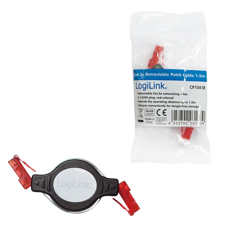 LogiLink CP1041R. Lunghezza cavo: 1,5 m, Cavo standard: Cat5e, Connettore 1: RJ-45, Connettore 2: RJ-45