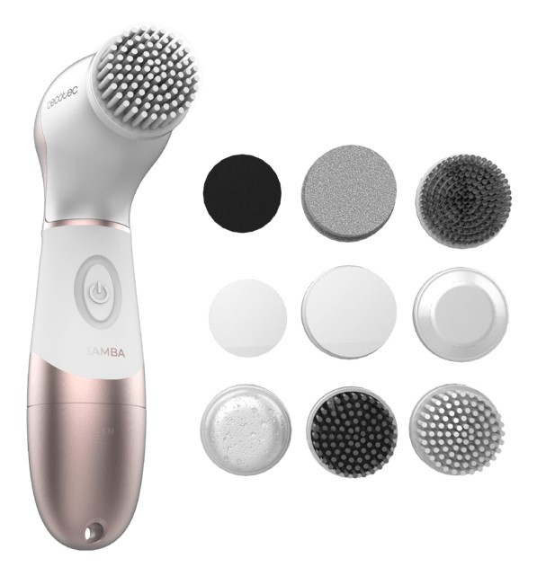 Cecotec 03371. Tipo: Spazzola rotante, Colore del prodotto: Marrone, Bianco, Adatto per i tipi di pelle: Pelle universale. Numero di testine incluse: 9 pz