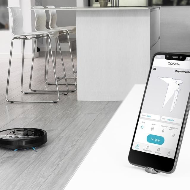 Cecotec Conga 2090 Vision. Tipo di contenitore della polvere: Combi, Colore del prodotto: Nero, Forma: Rotondo. Capacità polvere (totale): 0,55 L, Emissione acustica: 64 dB, Capacità del contenitore (aspirapolvere): 300 L. Capacità della batteria: 2600 mAh, Durata di funzionamento: 160 min, Voltaggio della batteria: 14,4 V. Altezza: 80 mm, Larghezza: 350 mm, Profondità: 350 mm