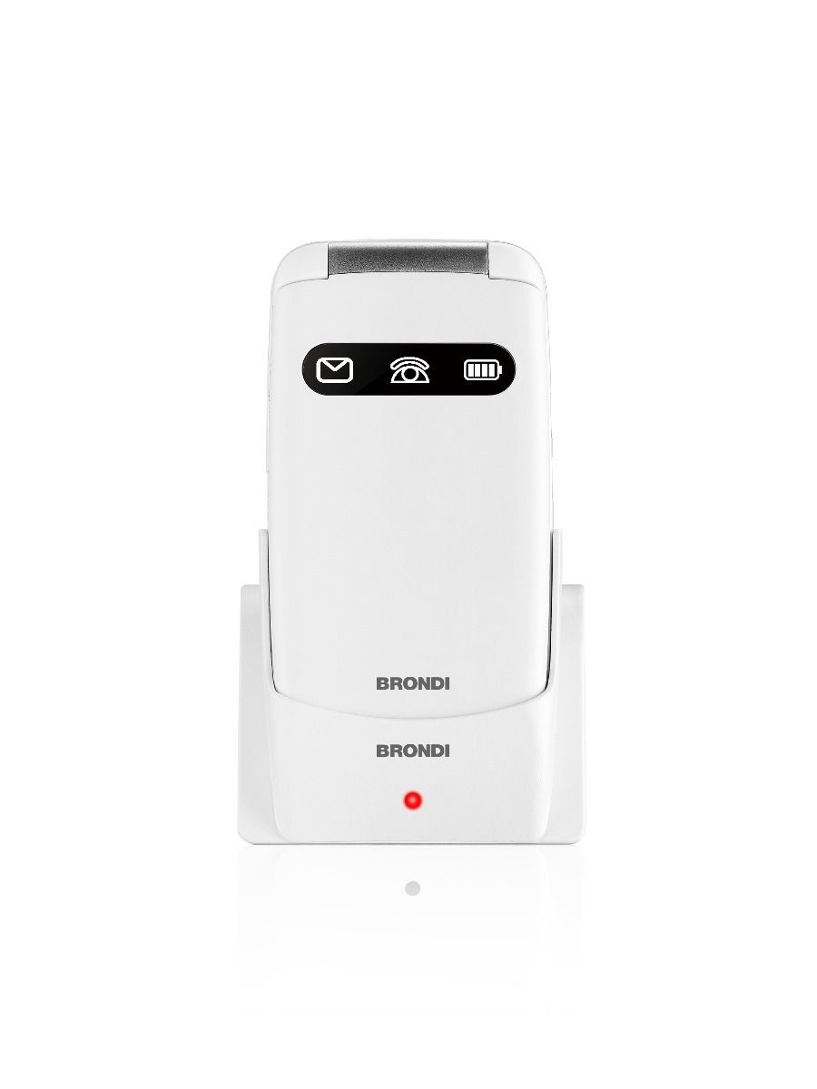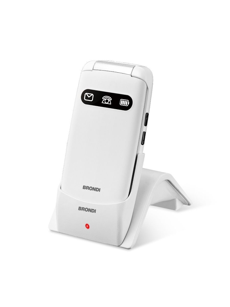 Brondi Amico Favoloso. Fattore di forma: A conchiglia. Capacità della scheda SIM: Doppia SIM. Dimensioni schermo: 7,11 cm (2.8"), Risoluzione del display: 240 x 320 Pixel. Risoluzione fotocamera posteriore (numerico): 1,3 MP. Bluetooth. Radio FM. Tecnologia batteria: Ioni di Litio, Capacità della batteria: 800 mAh, Autonomia in standby (2G): 220 h. Colore del prodotto: Bianco