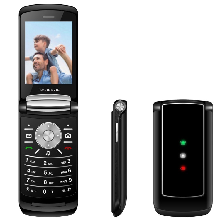 New Majestic Fly. Fattore di forma: A conchiglia. Capacità della scheda SIM: SIM singola. Dimensioni schermo: 7,11 cm (2.8"), Display esterno. Risoluzione fotocamera posteriore (numerico): 1,3 MP. Bluetooth. Tecnologia batteria: Litio, Capacità della batteria: 1000 mAh. Peso: 119 g. Colore del prodotto: Nero