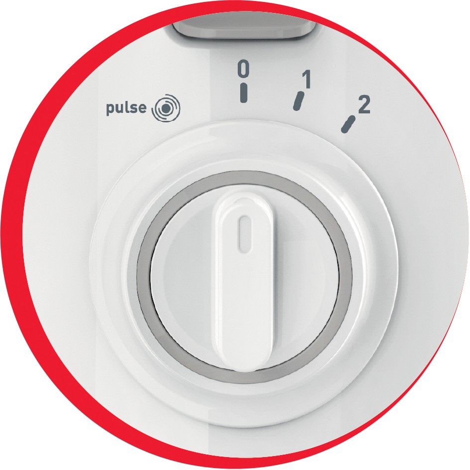 350 W di potenza con due comandi di velocità e una funzione Pulse per eccezionali prestazioni di taglio, tritatura e miscelazione di ogni ingrediente.
