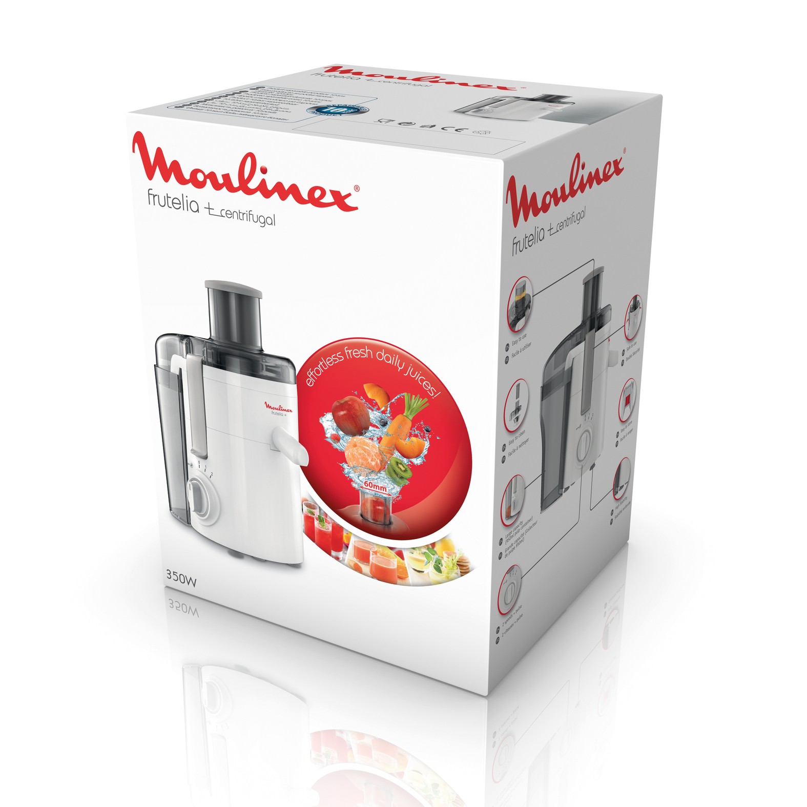 Moulinex JU3701 Frutelia+, Estrattore di Succo a Freddo, Dotato di Ampia Apertura, Facile da Pulire, 2 Velocità e Modalità Pulse, 350 W. Tipo di prodotto: Centrifuga spremiagrumi, Colore del prodotto: Bianco, Capacità contenitore polpa: 0,95 L. Materiale della scocca: Plastica, Materiale del filtro: Acciaio inossidabile. Potenza: 350 W. Larghezza: 17 mm, Profondità: 26 mm, Altezza: 29,5 mm. Larghezza imballo: 220 mm, Profondità imballo: 245 mm, Peso dell'imballo: 2,75 kg