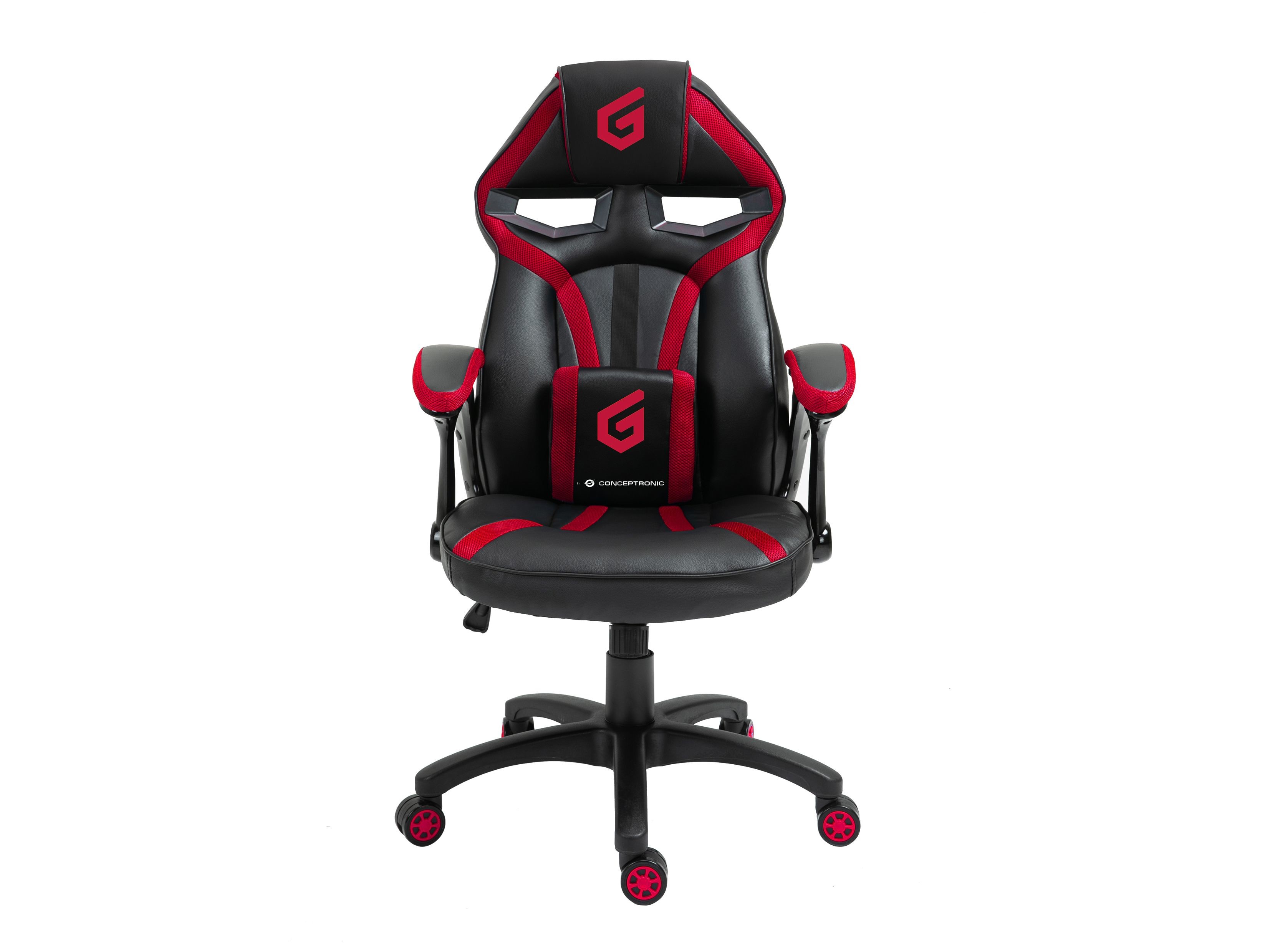 Conceptronic EYOTA05R, Sedia da gaming per PC, 150 kg, Seduta imbottita, Schienale imbottito, Nero, Nero, Rosso