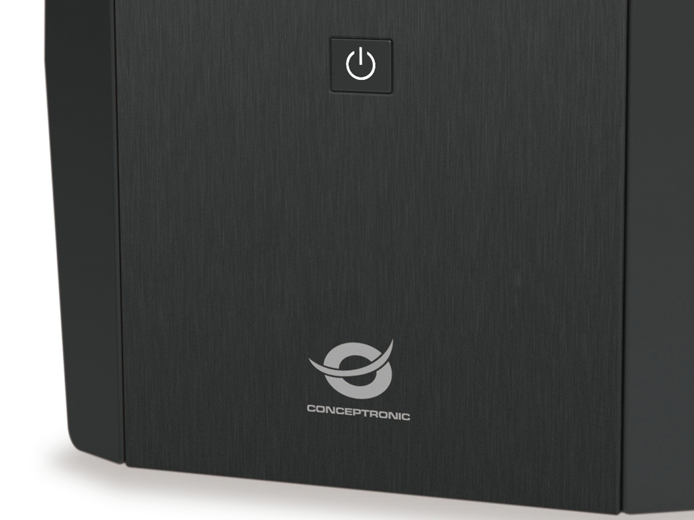 Conceptronic ZEUS04EP. Topologia UPS: A linea interattiva, Potenza in uscita: 2,2 kVA, Potenza in uscita: 1320 W. Tipo di uscita AC: Accoppiatore C13, Quantità prese AC: 5 presa(e) AC, Tipo di porta USB: USB di tipo B. Capacità della batteria: 18 Ah, Voltaggio della batteria: 12 V, Tempo di ricarica della batteria (90%): 8 h. Fattore di forma: Mini Tower, Colore del prodotto: Nero, Tipo di display: LCD. Larghezza: 148 mm, Profondità: 298 mm, Altezza: 178 mm