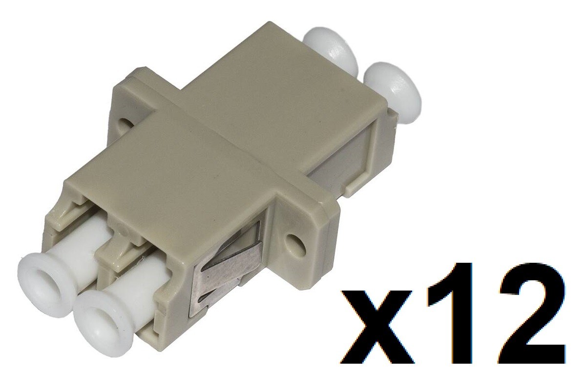 Confezione 12 acoppiatori a bussola per unire due cavi in fibra ottica, per pannelli patch, o scatole di giunzione fibra.Classe OM2, Duplex multimodale LC/LC, colore beige, manicotto in zirconio ceramico, alloggiamento di plastica.Questi adattatori garantiscono delle prestazioni ottimali e un collegamento di qualitУ.Ogni giunto Ю provvisto di un cappuccio antipolvere per proteggere i puntali dalla polvere.Connettore LC femmina - Connettore LC femmina (duplex) UPC