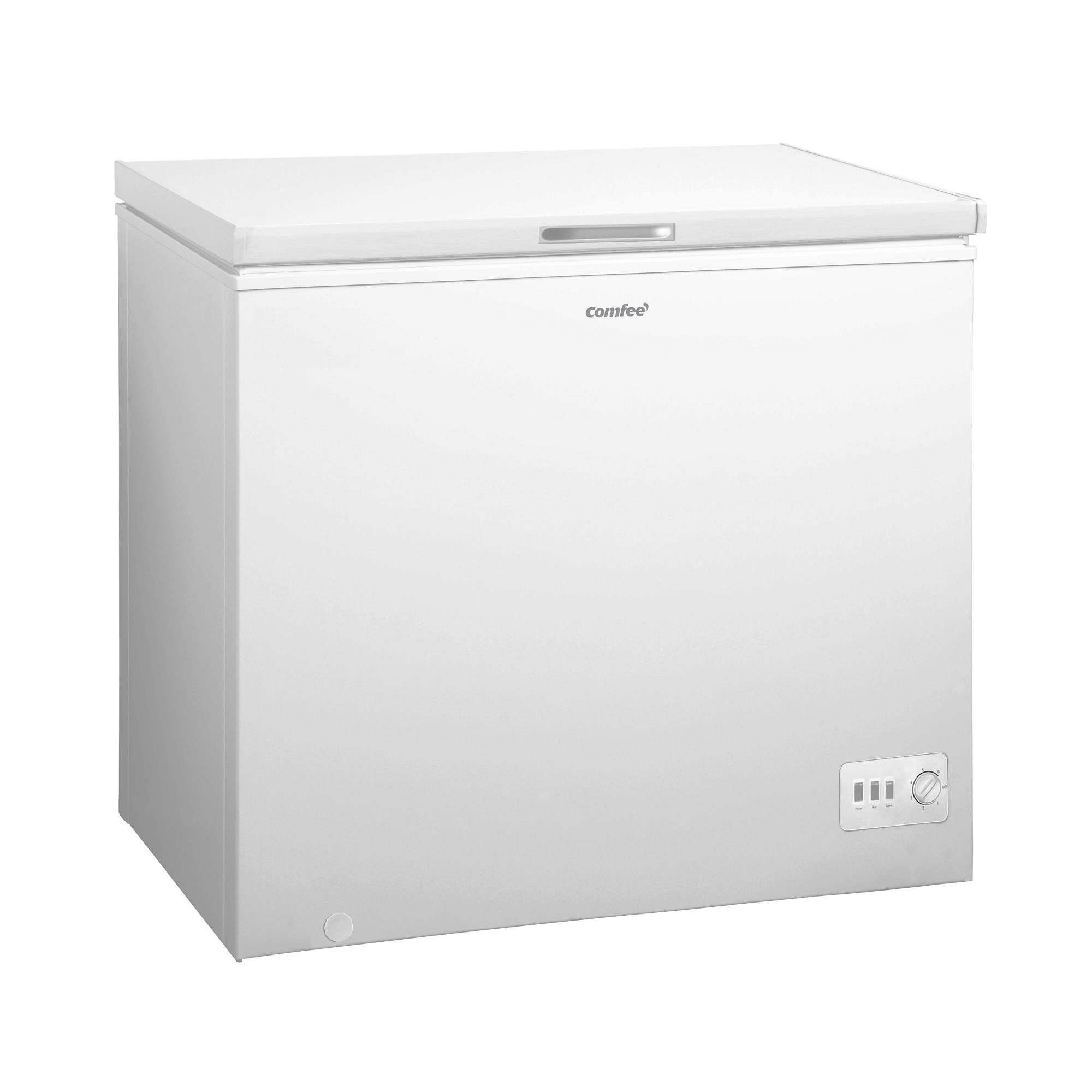Comfeè RCC269WH1. Capacità netta congelatore: 198 L, Classe climatica: SN-T, Capacità di congelamento: 9 kg/24h, Autonomia senza energia elettrica: 21 h, Emissione acustica: 41 dB, Punteggio: 4*. Cerniera porta: In alto. Classe efficienza energetica: F, Consumo energetico annuo: 250 kWh. Colore del prodotto: Bianco