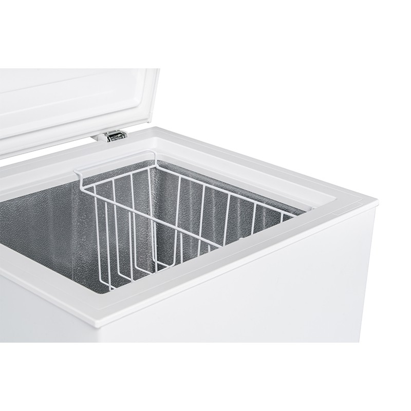 Hisense FC125D4AW1. Capacità netta congelatore: 95 L, Classe climatica: N-ST, Capacità di congelamento: 4,8 kg/24h, Emissione acustica: 40 dB, Punteggio: 4*. Cerniera porta: In alto. Tipo di lampada: LED. Classe efficienza energetica: F, Consumo energetico annuo: 209 kWh. Colore del prodotto: Bianco