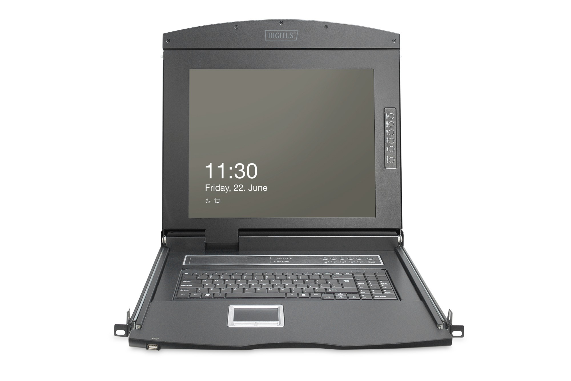 Grazie al suo design modulare, la console DIGITUS® 19" HD TFT offre un'ampia gamma di opzioni di configurazione individuali che consentono di personalizzare la console in base al settore di applicazione. Ciò consente di risparmiare sui costi e di aggiornare o convertire la console con moduli aggiuntivi in qualsiasi momento. La configurazione flessibile garantisce che la console sia a prova di futuro. La console modulare è composta da un monitor da 19", uno switch KVM VGA a 1 porta e il touchpad.
