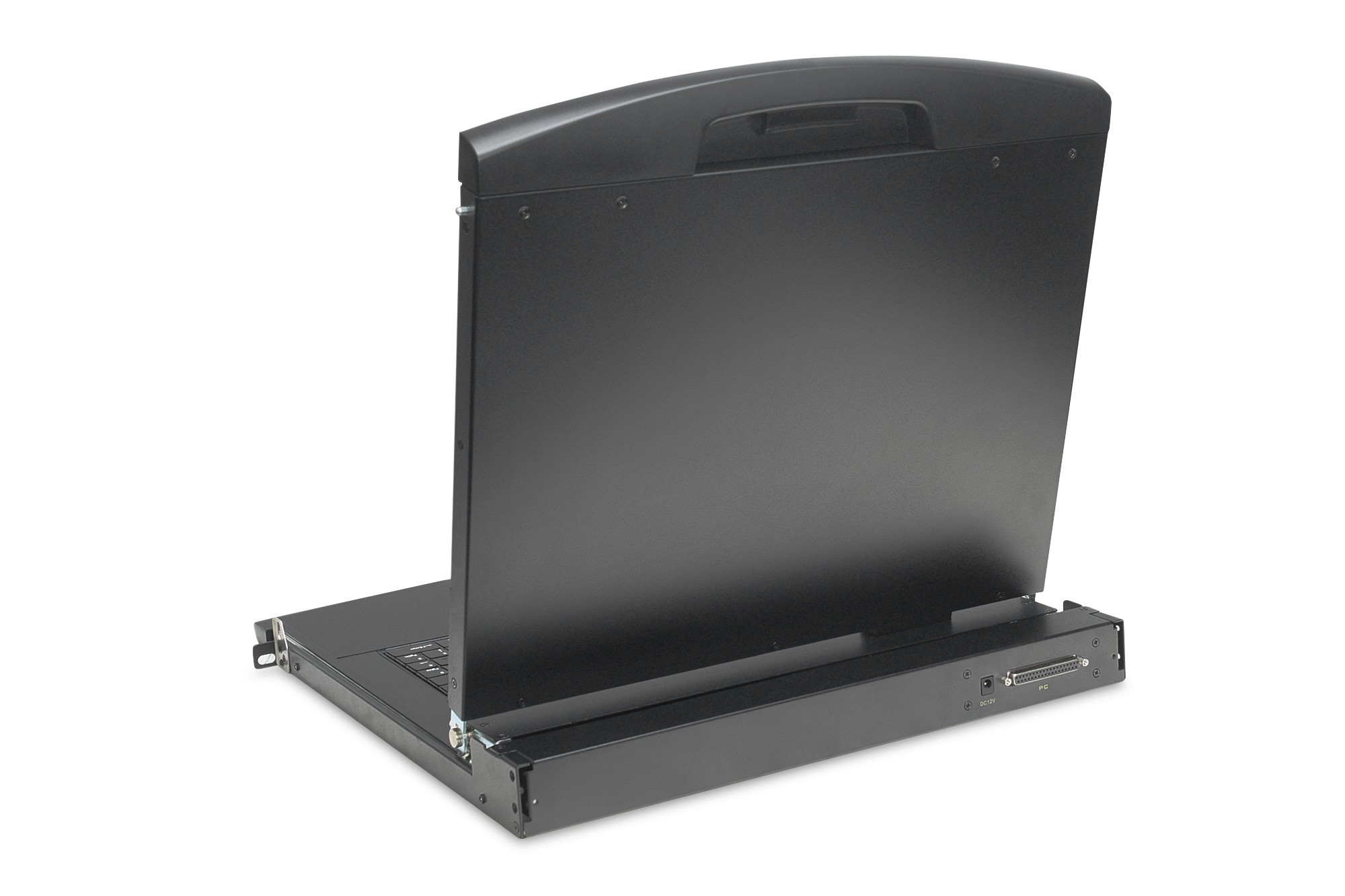La console può essere completamente estratta dall'armadio del server e lo schermo TFT può essere inclinato di 120 gradi.