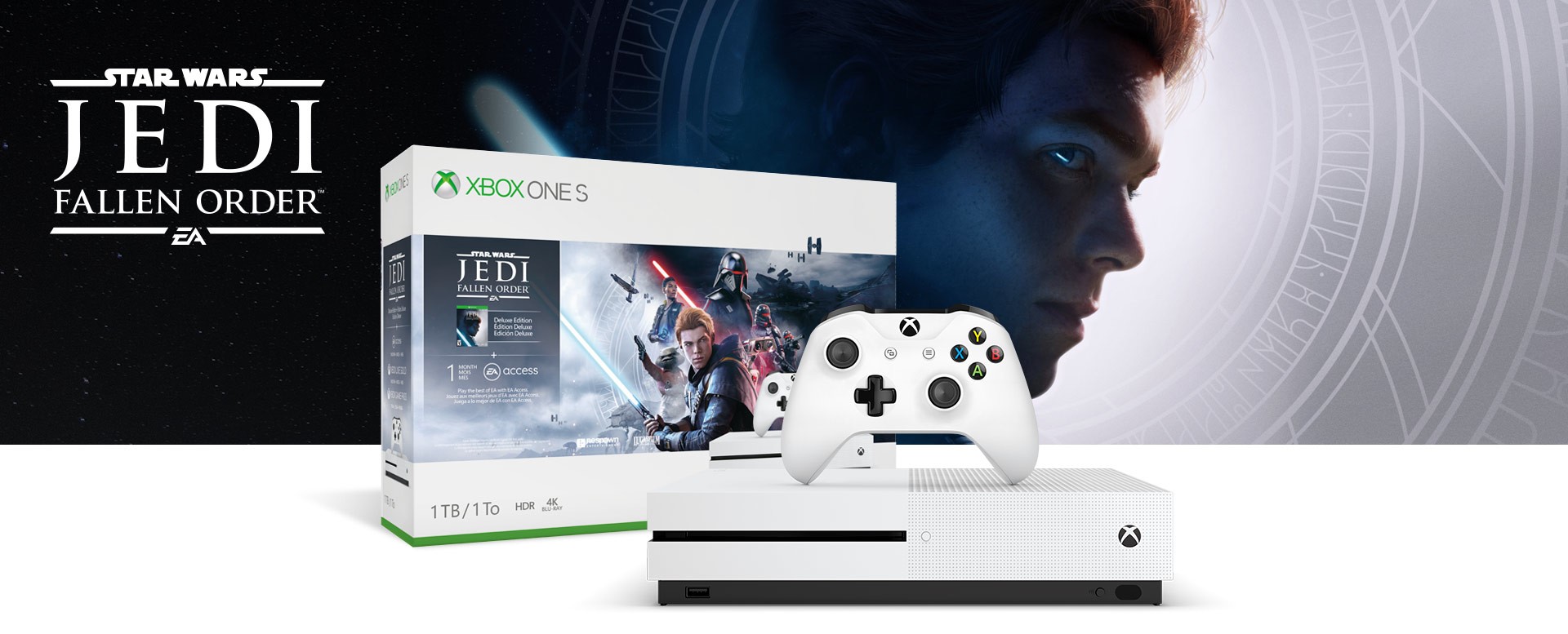 Acquista il bundle Xbox One X Star Wars Jedi: Fallen Order™ e impersona un padawan Jedi che è sfuggito all'epurazione dell'Ordine 66. Il bundle include il download del gioco completo Star Wars Jedi: Fallen Order™ Deluxe Edition, gli abbonamenti Xbox Game Pass per Console e Xbox Live Gold di prova validi 1 mese e un mese di EA Access.