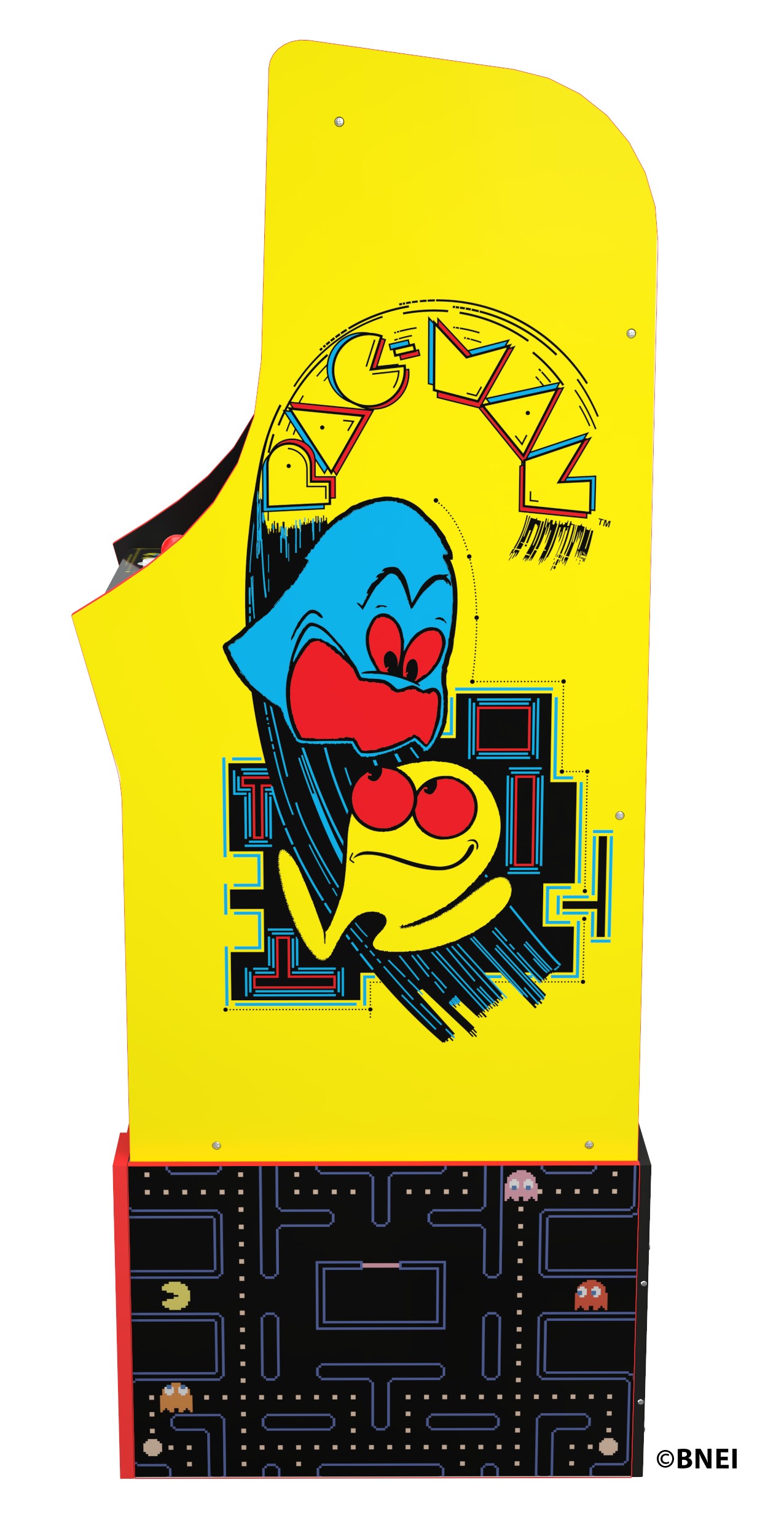 Originally founded under the name Nakamura Seisakujo in 1955, the company that would become BANDAI NAMCO Entertainment was initially in the coin-operated amusement ride business. Entering the video game industry at the end of the ‘70s, BANDAI NAMCO Entertainment’s titles would quickly change the world of entertainment forever. With their release of GALAXIAN™, GALAGA™, and PAC-MAN™ — the best-selling arcade game of all time — BANDAI NAMCO Entertainment’s titles were instrumental in ushering in the golden age of arcade games and have impacted pop-culture across generations. Twelve games, one cabinet, unlimited retro gaming fun. Add the BANDAI NAMCO Entertainment Legacy Edition to your home and have a BLAST anytime…no quarters required! Brought to you by Arcade1Up, this is an absolute must-have for your family game room, game cave, or even in the office. Arcade1Up home arcade cabinets play great, look great, and are instant conversation pieces. And what a phenomenally iconic game list this is…a dozen classic BANDAI NAMCO Entertainment titles, packed inside! PAC-MAN™, PAC-LAND™, PAC-MAN™PLUS, SUPER PAC-MAN™, PAC & PAL™, PAC-MANIA™, GALAXIAN™, GALAGA™, DIG DUG™, DIG DUG™II, MAPPY™, and ROMPERS™. ALL included. Switch up to any included game at will with the easy to navigate on-screen menus. Additionally, this BANDAI NAMCO Entertainment Legacy Edition includes a Custom riser, if you need to give it some lift! Iconic arcade games. Pop culture imagery that has stood the test of time. Nostalgia that transcends generations. We call this the “Legacy Edition” for a reason…make that many reasons!