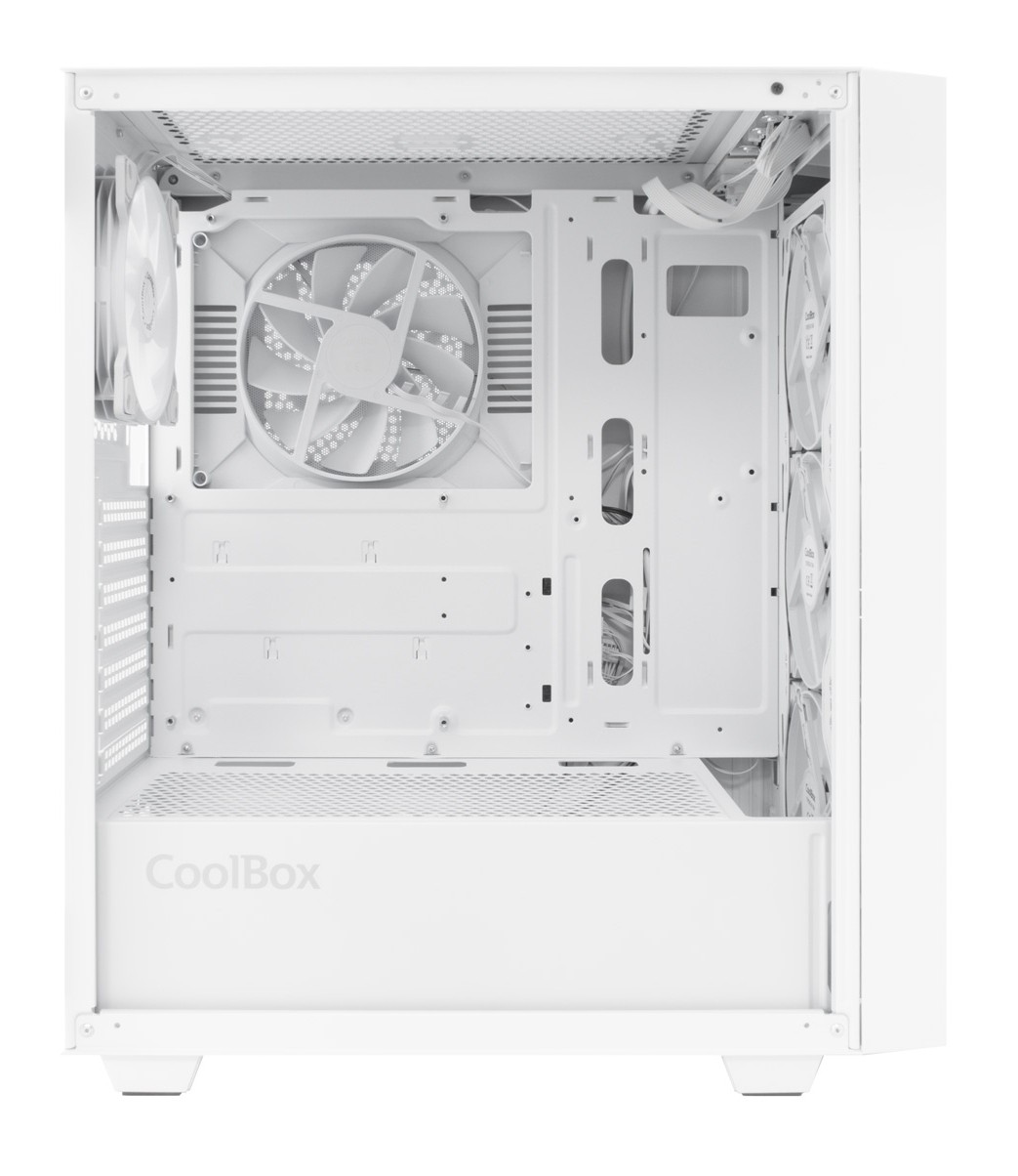 CoolBox COO-CHA-GA300W-0. Fattore di forma: Tower, Tipo: PC, Colore del prodotto: Bianco. Posizione alimentazione: Fondo, Fattori di forma di alimentazione supportati: ATX. Ventole anteriori installate: 3x 120 mm, Diametro delle ventole frontali supportato: 120 mm, Ventole laterali installate: 1x 140 mm. Dimensioni di hard disk drive supportati: 2.5,3.5". Larghezza: 210 mm, Profondità: 360 mm, Altezza: 440 mm