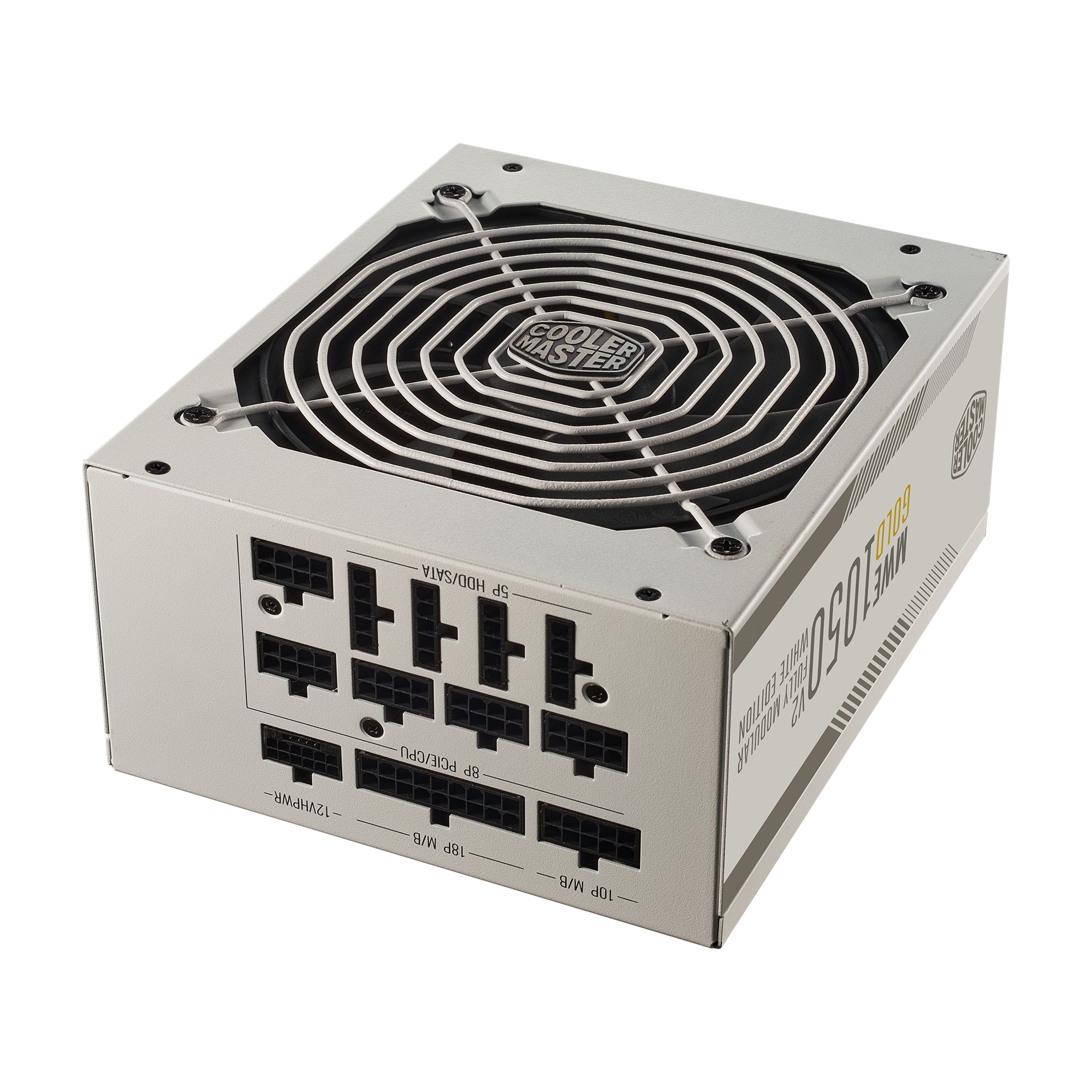 Cooler Master MWE Gold 1050 - V2 ATX 3.0 White Version. Potenza totale: 1050 W, Tensione di ingresso AC: 100 - 240 V, Frequenza di ingresso AC: 50/60 Hz. Connettore scheda madre: 24-pin ATX, Lunghezza del cavo di alimentazione della scheda madre: 65 cm, Lunghezza del cavo di alimentazione SATA: 120,500 mm. Utilizzo: PC, Fattore di forma dell'unità di alimentazione (PSU): ATX, Certificazione 80 PLUS: 80 PLUS Gold. Colore del prodotto: Bianco, Tipo di raffreddamento: Attivo, Diametro del ventilatore: 14 cm. Certificazione: TUV,cTUVus,CE,FCC,BSMI,CCC, EAC,RCM,UKCA,BIS