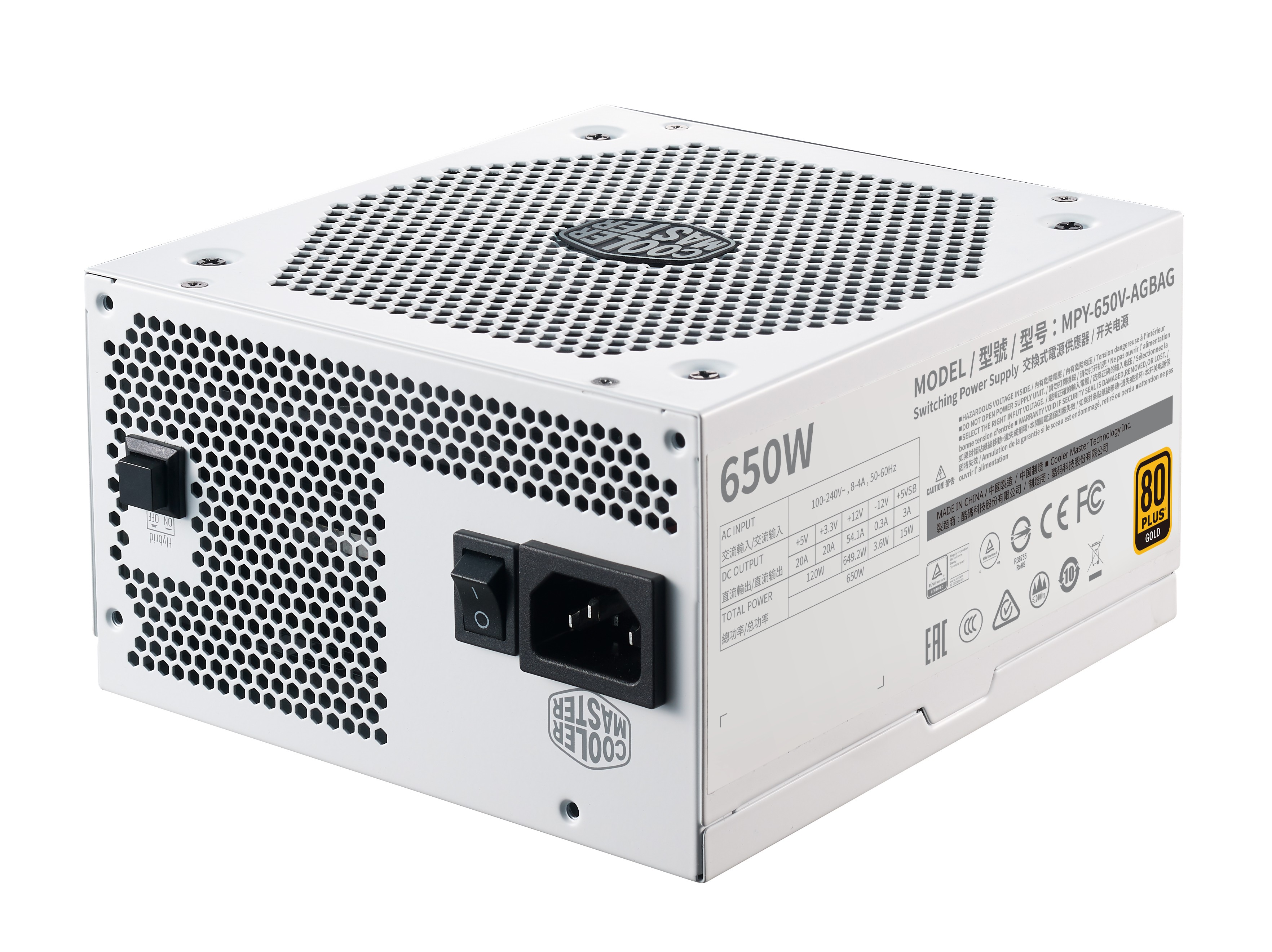 Cooler Master V650 Gold-V2 White Edition, 650 W, 100 - 240 V, 50/60 Hz, 9 - 4.5 A, Attivo, 130 W