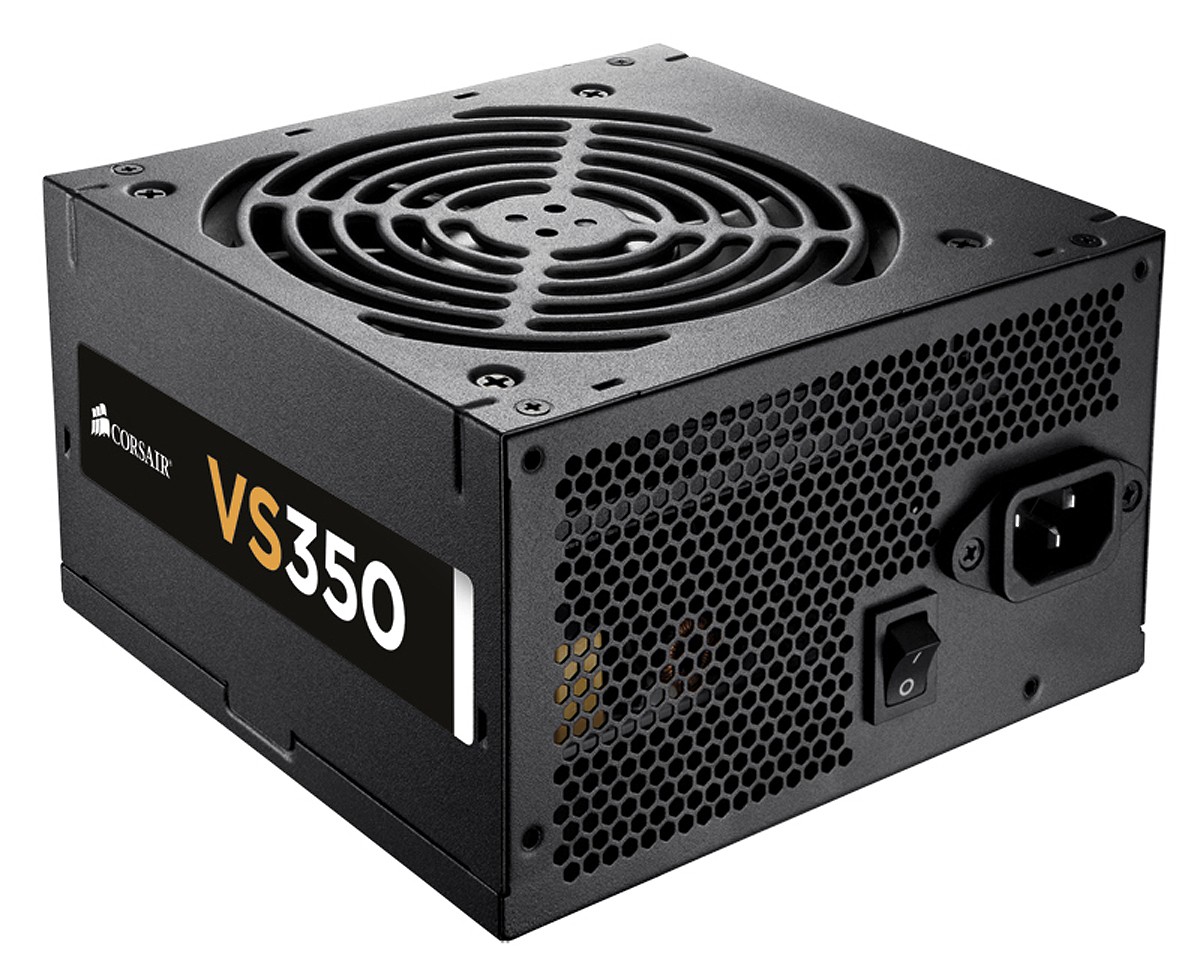 Corsair VS350. Potenza totale: 350 W, Tensione di ingresso AC: 200 - 240 V, Frequenza di ingresso AC: 47 - 63 Hz. Connettore scheda madre: 24-pin ATX. Utilizzo: PC, Fattore di forma dell'unità di alimentazione (PSU): ATX, Certificazione 80 PLUS: 80 PLUS. Colore del prodotto: Nero, Tipo di raffreddamento: Attivo, Diametro del ventilatore: 12 cm. Larghezza: 150 mm, Profondità: 140 mm, Altezza: 86 mm