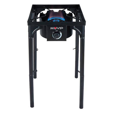 Muvip MV0633 Fornello a gas ad alta potenza - Bruciatore in ghisa - Potenza 4,6 kW - Struttura rinforzata - Chiave di regolazione del gas - Protezione antivento dalla fiamma - Colore nero
