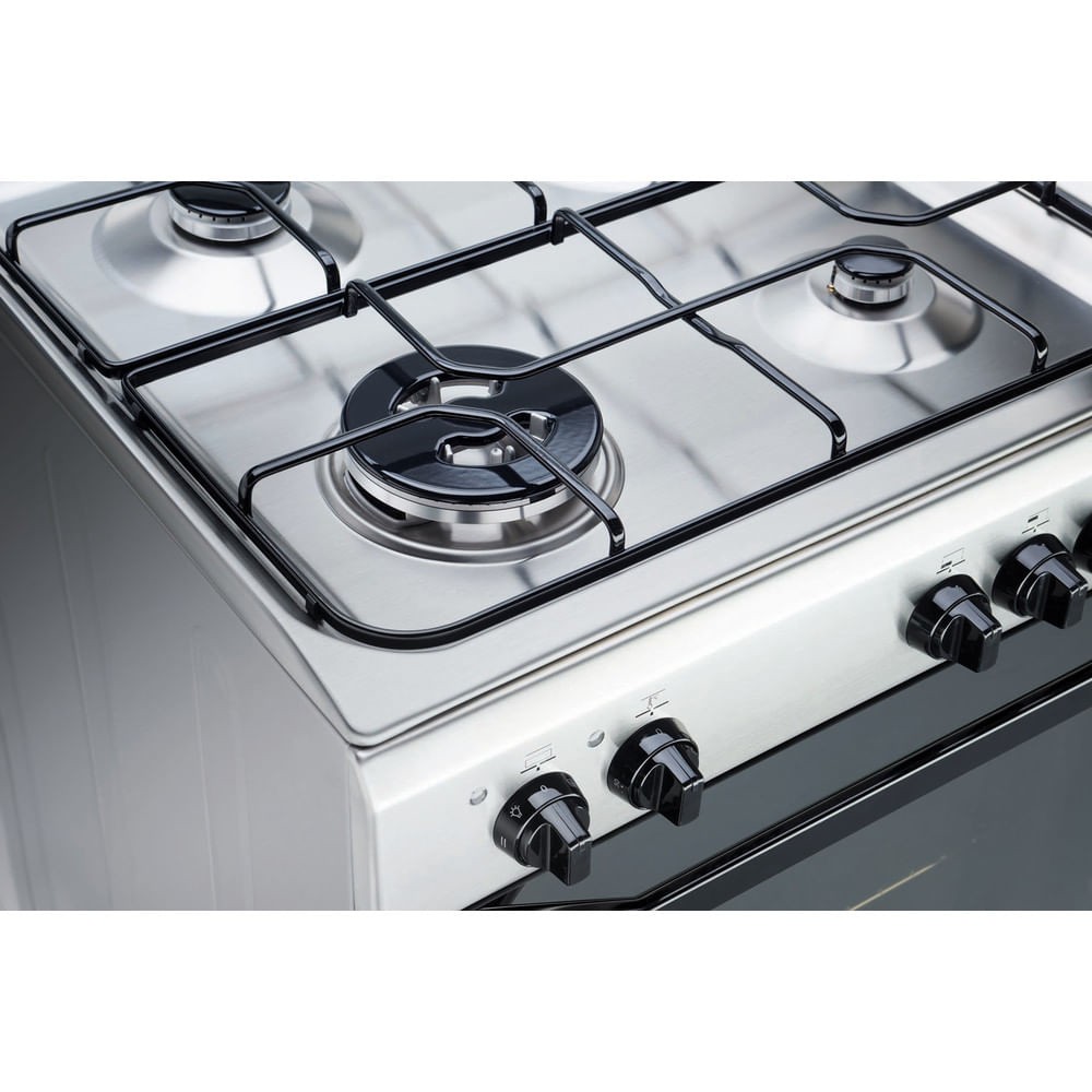 Indesit I6TMH2AF(X)/I. Tipo di prodotto: Cucina, Colore del prodotto: Acciaio inossidabile, Tipo di controllo: Manopola. Tipo di piano cottura: Gas, Numero totale di fuochi: 4 Fornello(i), Tipo di superficie superiore: Acciaio inossidabile. Dimensione del forno: Media, Sorgente di alimentazione del forno: Elettrico, Capacità netta del forno: 58 L. Tipo di timer: Meccanico. Classe efficienza energetica: A, Consumo energetico (convenzionale): 0,99 kWh, Consumo energetico (convezione forzata): 0,77 kWh