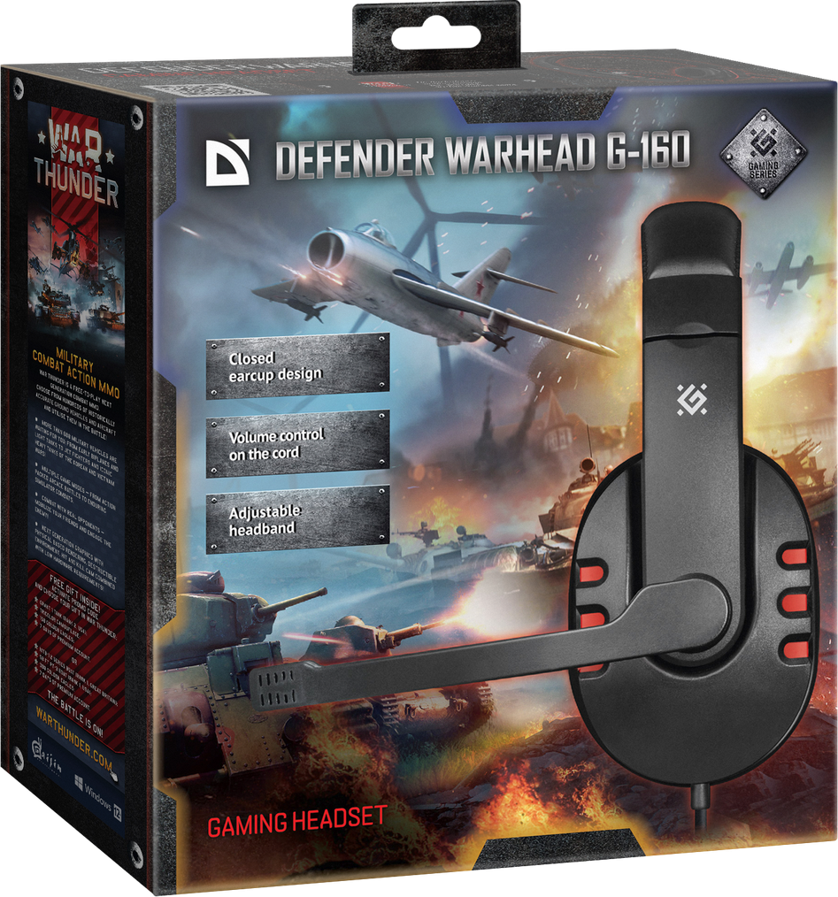 Defender WARHEAD G-160. Tipo di prodotto: Auricolare. Tecnologia di connessione: Cablato. Utilizzo raccomandato: Giocare. Frequenza cuffia: 20 - 20000 Hz. Lunghezza cavo: 2,5 m. Peso: 310 g. Colore del prodotto: Nero
