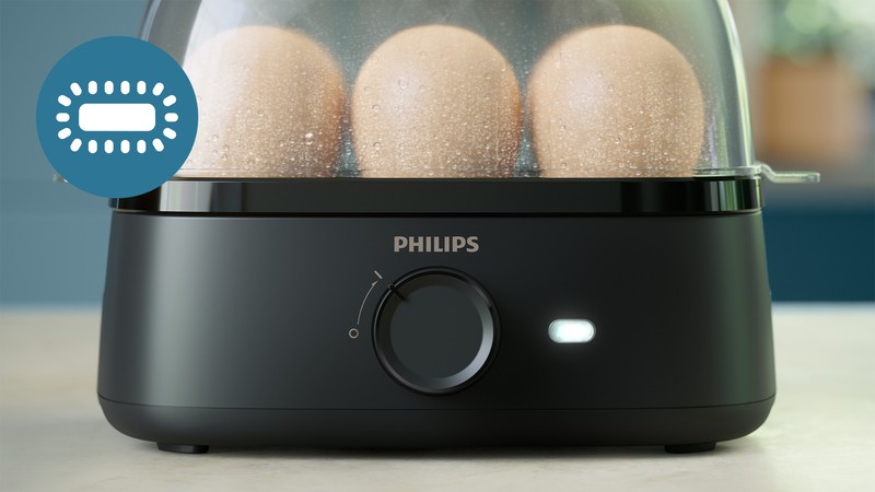 I dettagli sono importanti. L'elegante spia di "accensione" indica quando il cuociuova è acceso.