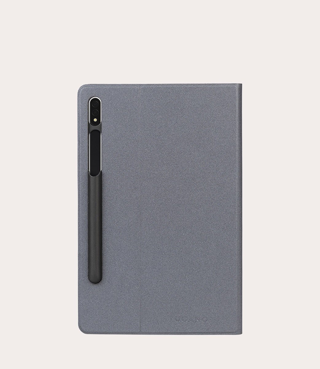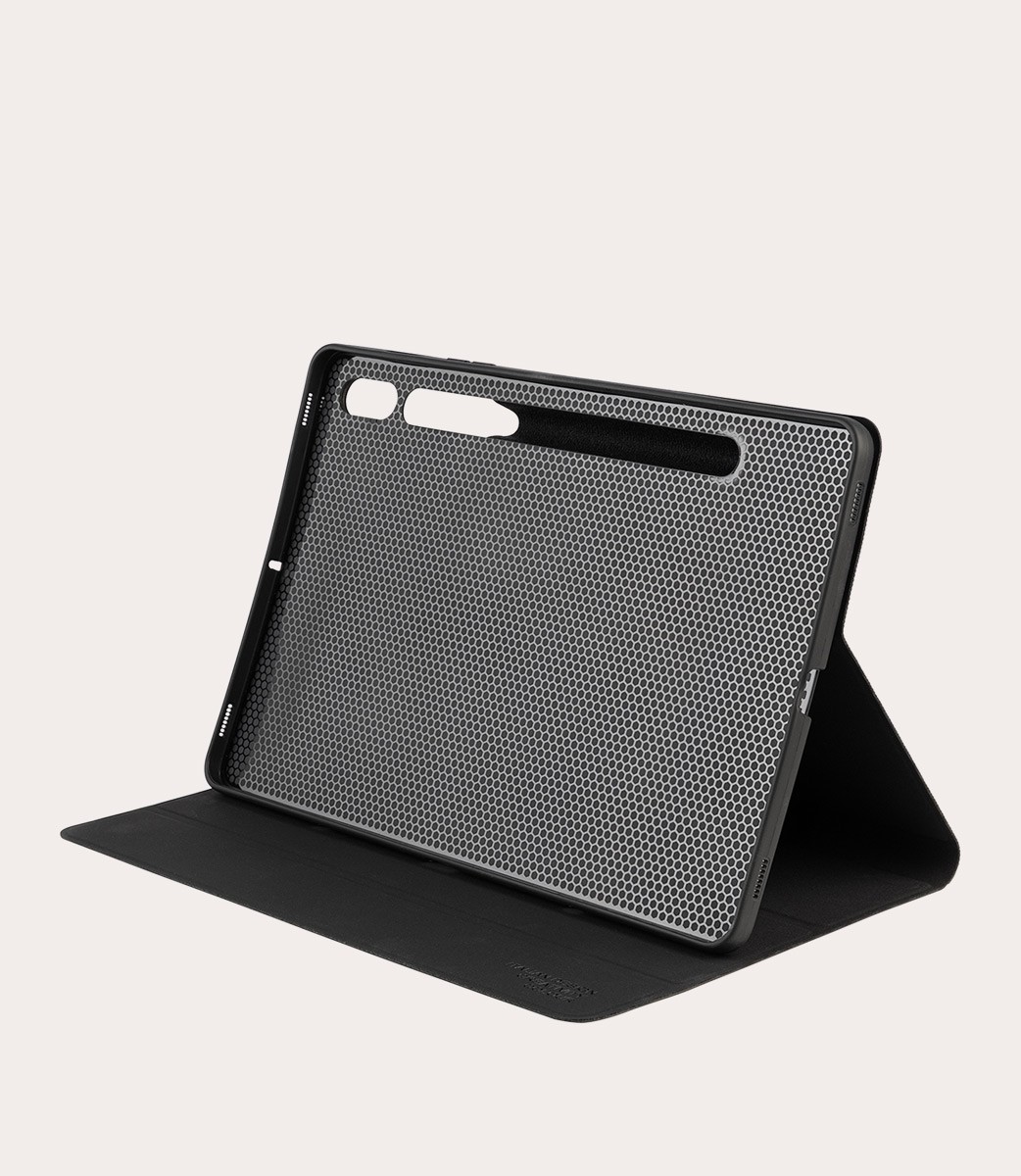 Custodia per Samsung Galaxy Tab S8 con copertina in materiale ottenuto dalle bottiglie in plastica riciclate. L'interno è in morbido materiale antigraffio e la scocca posteriore è in TPU, per una maggiore protezione. La copertina frontale si trasforma in un pratico e comodo standup per scrivere, guardare film e foto. All'esterno vi è un alloggio integrato per S Pen. Per la realizzazione di questa custodia sono state sottratte all'ambiente circa 3 bottiglie da 500 ml.