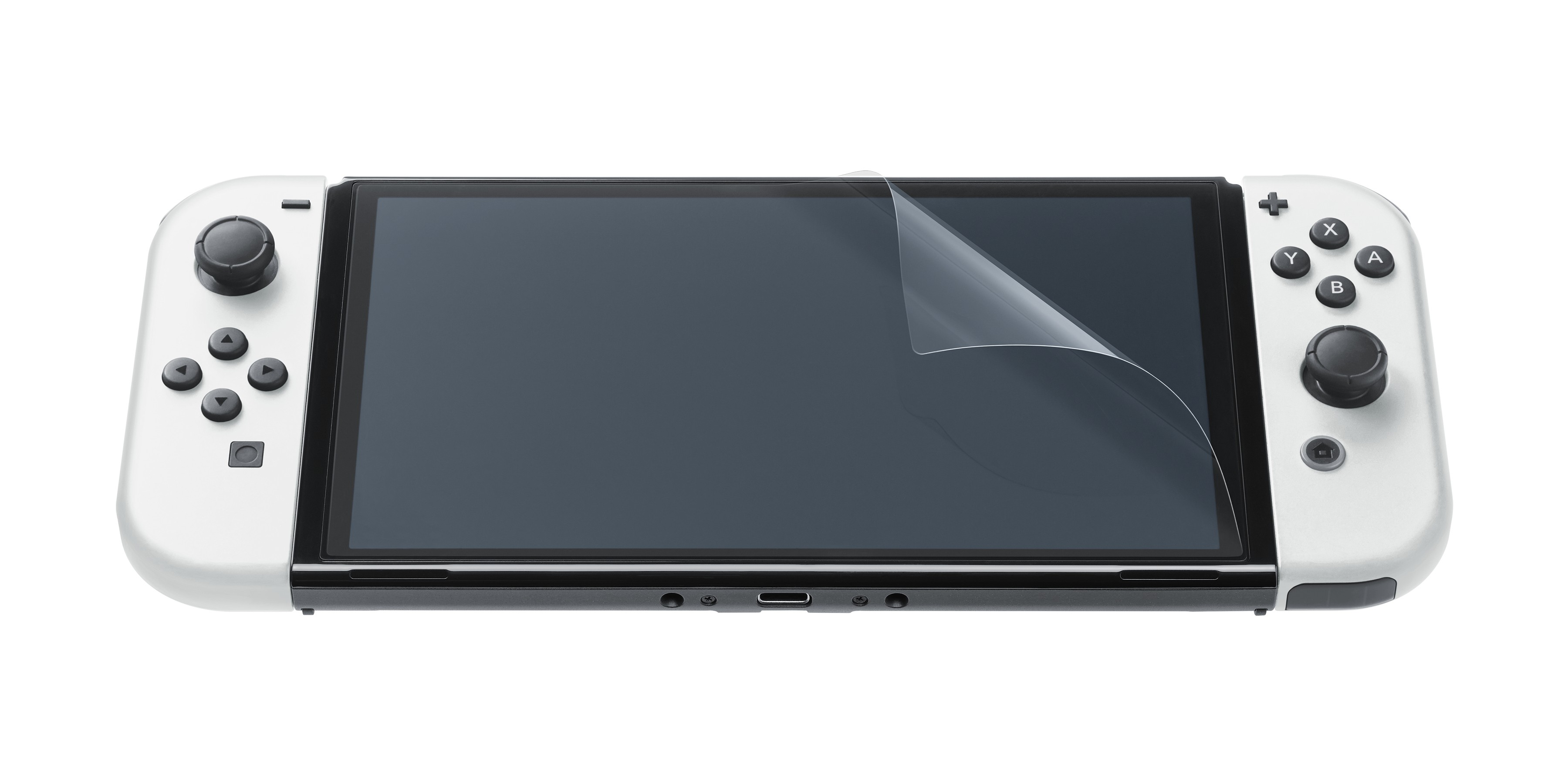Un bundle che contiene una custodia compatibile sia con Nintendo Switch sia con Nintendo Switch – Modello OLED e pellicole protettive per gli schermi di entrambe le console. Include anche un compartimento dove riporre fino a 5 schede di gioco e due laccetti per Joy-Con. La custodia può anche essere usata come supporto per la console.