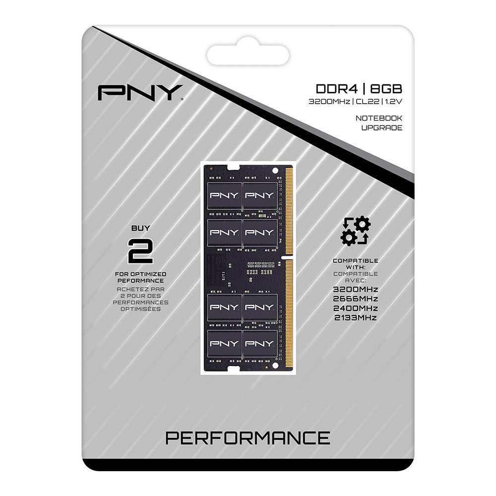 PNY Performance. Componente per: Computer portatile, RAM installata: 8 GB, Configurazione della memoria (moduli x dimensione): 1 x 8 GB, Tipo di RAM: DDR4, Velocità memoria: 3200 MHz, Latenza CAS: 22