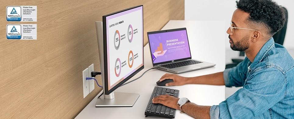 Comfort senza sacrificare i colori: ottimizza il comfort visivo con ComfortView Plus, uno schermo integrato e sempre attivo che riduce le emissioni di luce blu potenzialmente dannose e garantisce un'eccellente precisione dei colori.