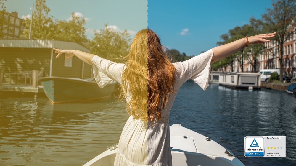 Scopri la differenza quando ComfortView Plus ti aiuta a ricomporre le tonalità gialle per garantire una migliore fedeltà dei colori, rispetto ai risultati della tecnologia a bassa emissione di luce blu abilitata per software.