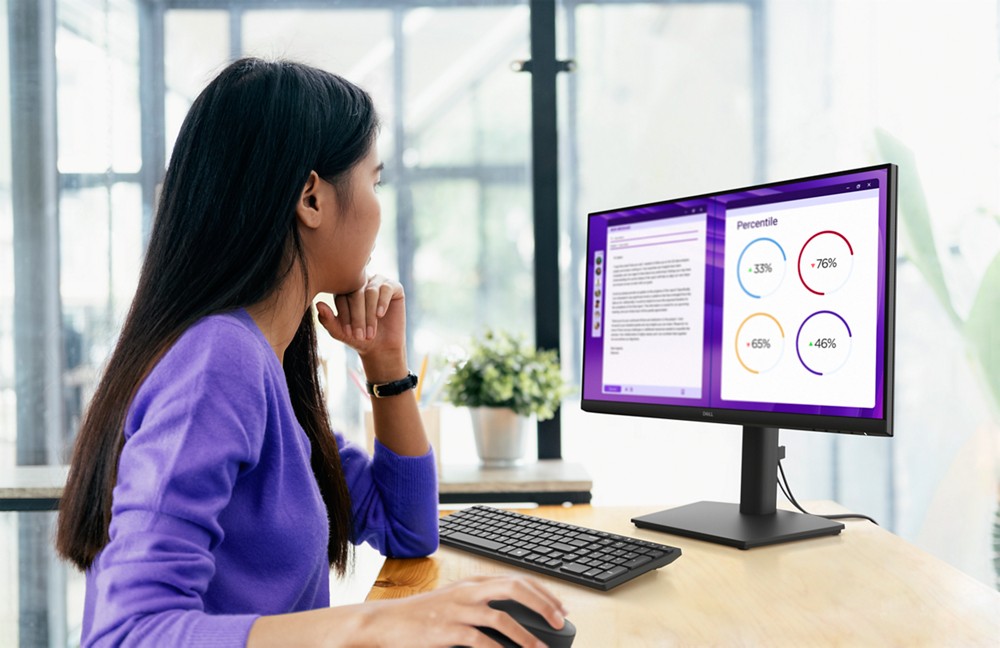 Ottieni l'essenziale per migliorare la produttività con questo monitor ad altezza regolabile da 23,8 pollici certificato da TÜV Rheinland® per un comfort visivo a 3 stelle.